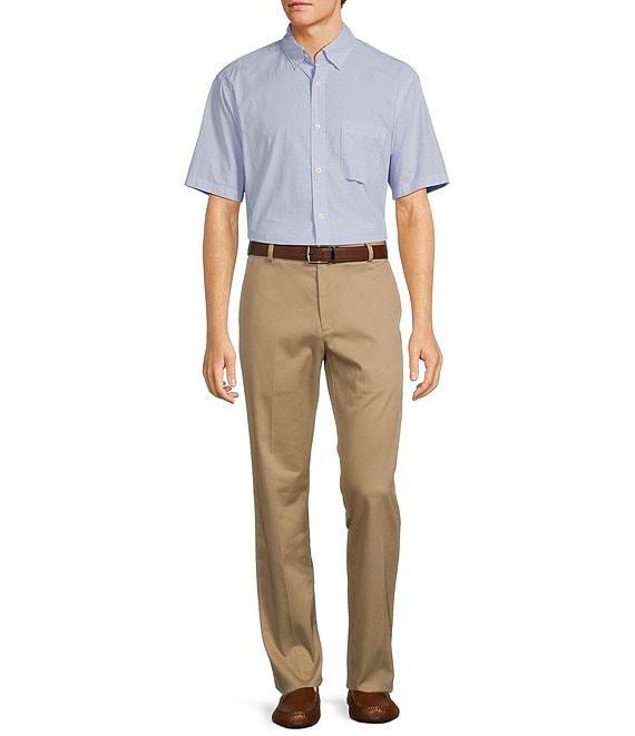 From Roundtree & Yorke, this sport shirt features: Mini check pattern Button-down collar Short sleeves Button-front closure Single left side of the chest pocket Shirttail hem Cotton Machine wash/tumble dry Imported.
