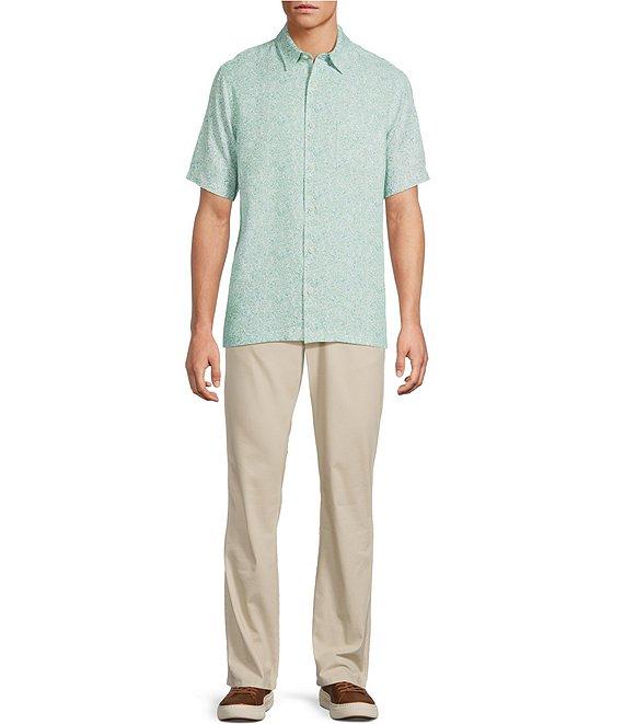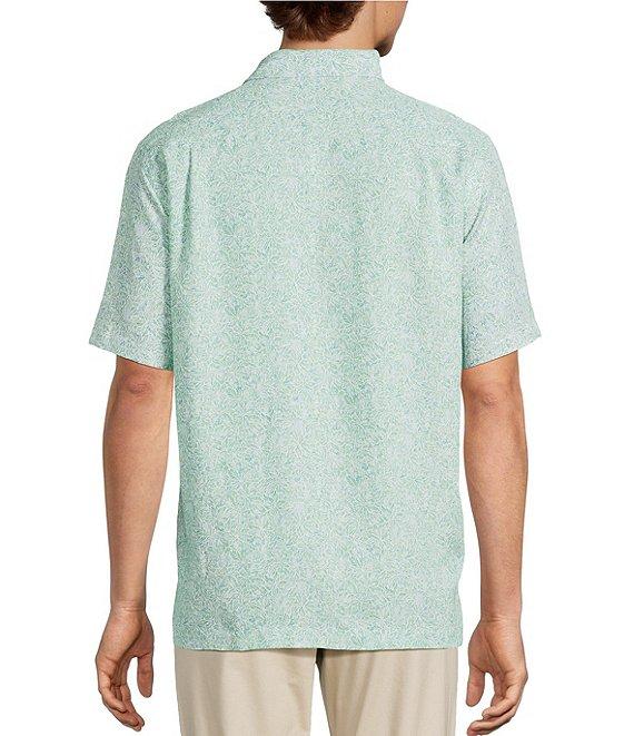 Roundtree & Yorke Short Sleeve Mini Leaf Print Polynosic Sport Shirt