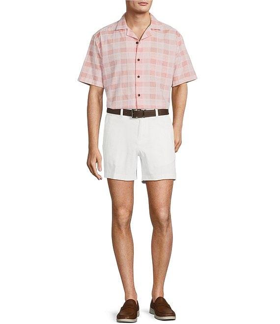 Roundtree & Yorke Short Sleeve Textured Plaid Sport Shirt