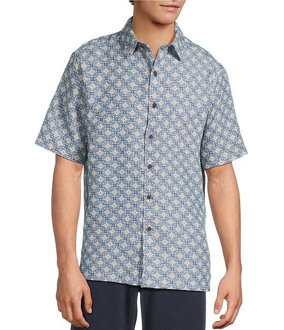 Roundtree & Yorke Short Sleeve Tile Geo Print Polynosic Sport Shirt