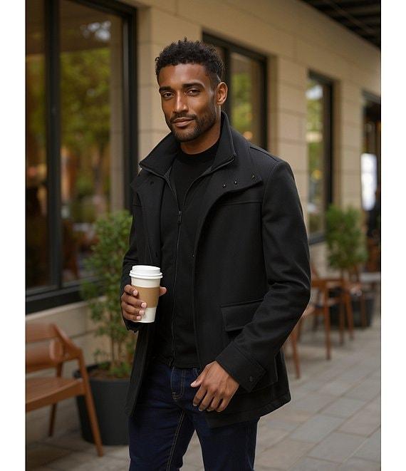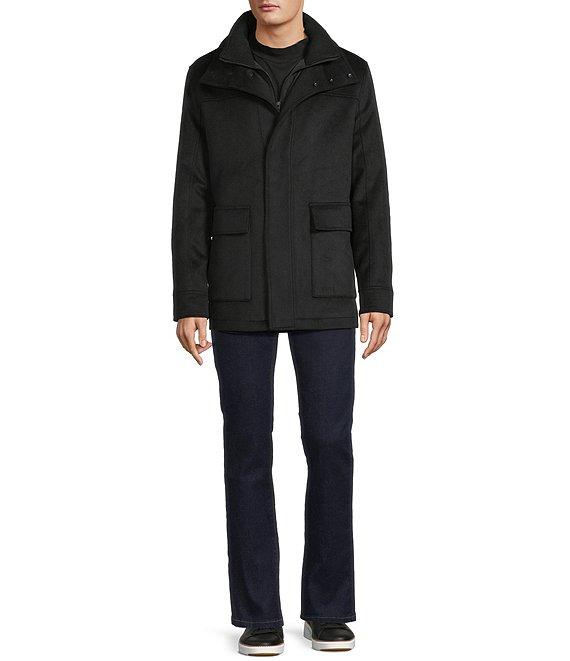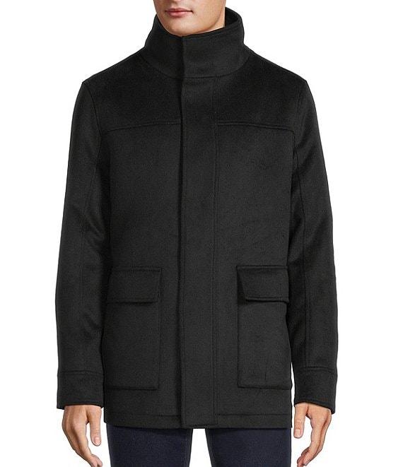 From Roundtree & Yorke Big & Tall, this coat features: Diamond quilting interior Stand collar with fixed bib Long sleeves Zip-front on bib Storm flap with snaps Front hip pockets with side entry and additional drop-in patch pockets with flaps Interior drop-in chest pocket Polyester Dry clean Imported.
