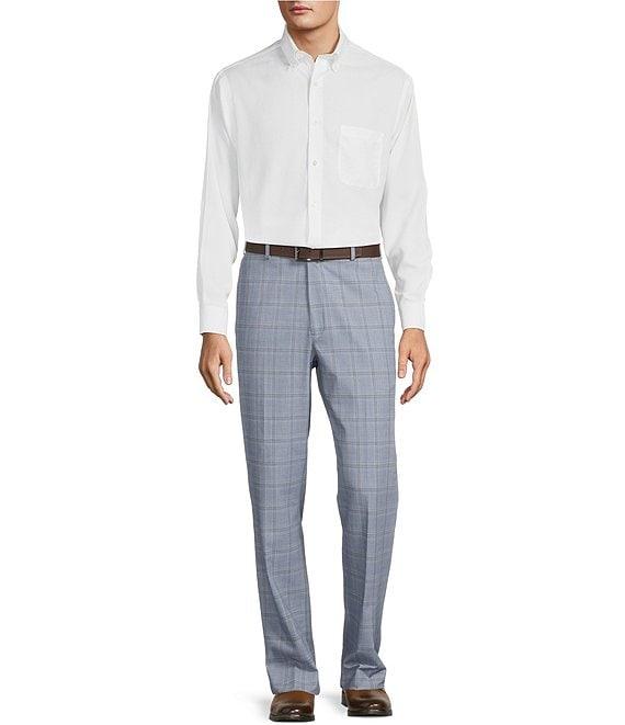 Roundtree & Yorke Travel Smart Flat Front Classic Fit Textured Plaid Dress Pants