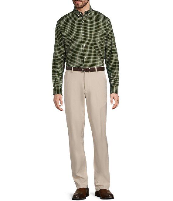 From Roundtree & Yorke TravelSmart, this shirt features: Windowpane pattern Herringbone fabric Button-down collar Long sleeves Button-front closure Single patch pocket on the left side of chest Curved hem Cotton/polyester Machine wash warm/tumble dry Imported.