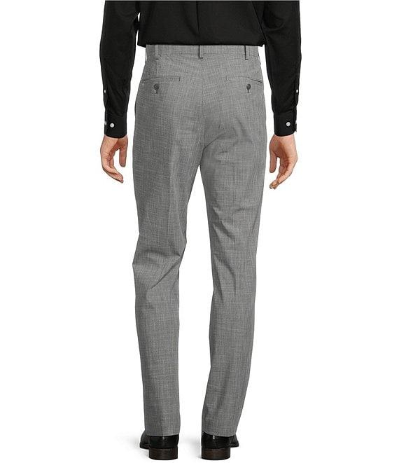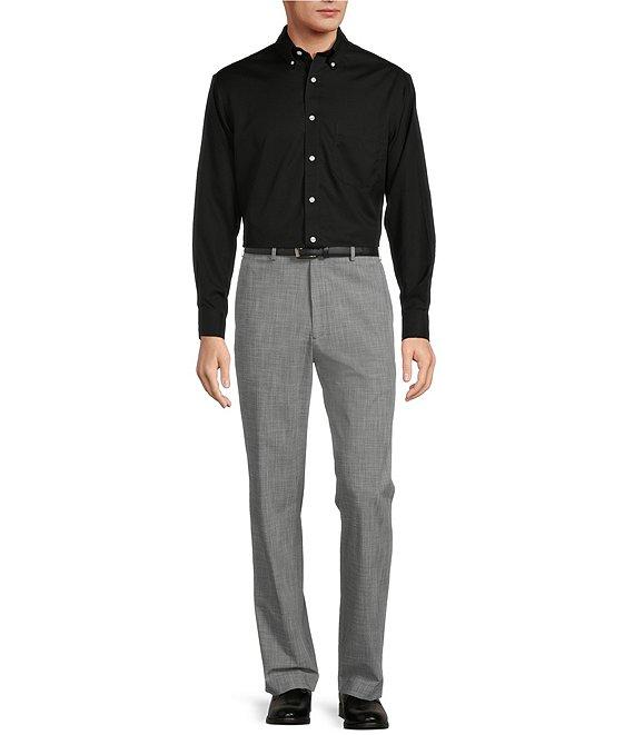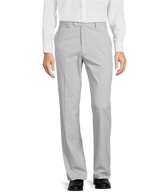 From Roundtree & Yorke, these dress pants feature: Plain weave fabrication Flat front; classic fit Belt loops Zip/button closure Front/back functional pockets Detailed stitching Easy care Ultimate comfort stretch waist Shirt gripper Crease retention Straight hemline Polyester/rayon/spandex Machine wash/tumble dry Imported.