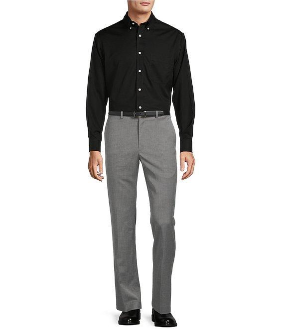 From Roundtree & Yorke, these dress pants feature: Luxury Gabardine Flat front Wrinkle resistant, with crease retention Zip fly with extended tab closure Ultimate comfort waist expands up to 2 inches without an elastic mechanism Straight fit Non-iron Polyester/rayon/spandex blend Machine wash/tumble dry Imported.