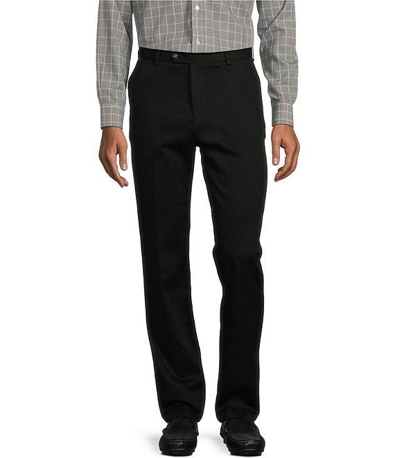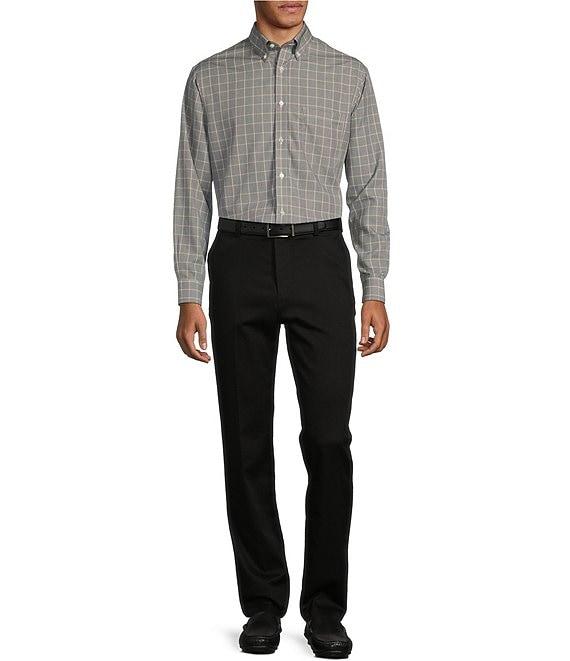 From Roundtree & Yorke, these pants feature: Slim fit Flat front Belt loops Button/zip closure CoreComfort stretch waistband with shirt gripper 2 front slant pockets 2 back flat pockets Stretch fabric that is non-iron, and fade, shrink, and pill-resistant Cotton/spandex Machine wash/tumble dry Imported.