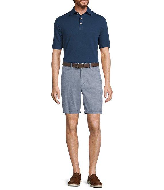 Roundtree & Yorke True Blue 8#double; Inseam Classic Flat Front Dobby Print Pull On Shorts