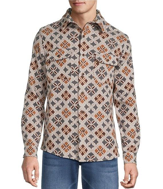 Rowm Long Sleeve Jacquard Multi Geo Print Button Front Shirt