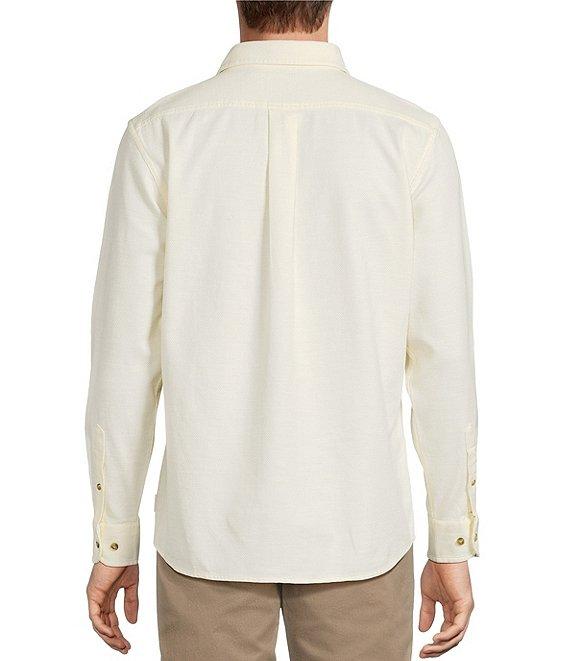 From Rowm, this shirt features: Textured dobby Button-down collar Long sleeves Button-front closure Patch pockets on chest Shirttail hem Cotton/spandex Machine wash/tumble dry Imported.