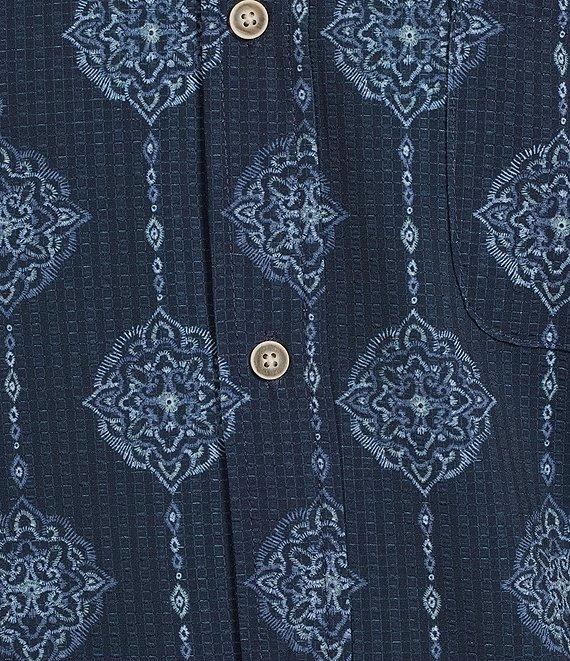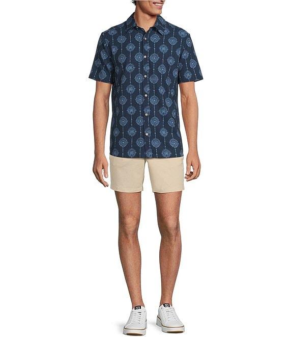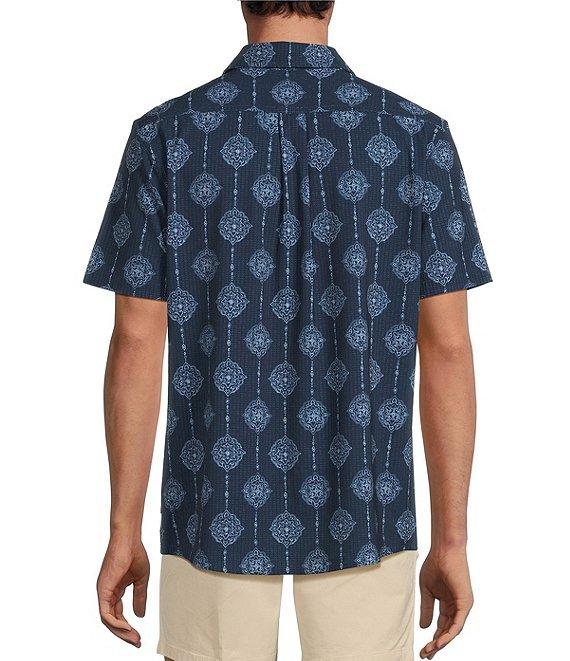 Rowm Performance Rec + Relax Short Sleeve Line Medallion Print Textured Shirt