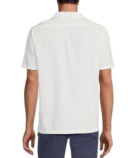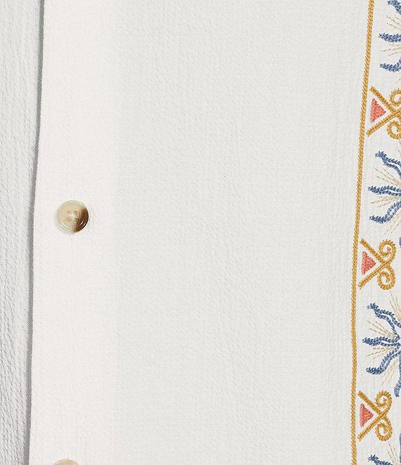Rowm Short Sleeve Seersucker Embroidery Stripe Camp Shirt