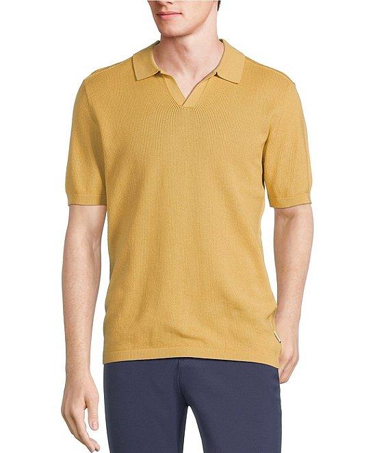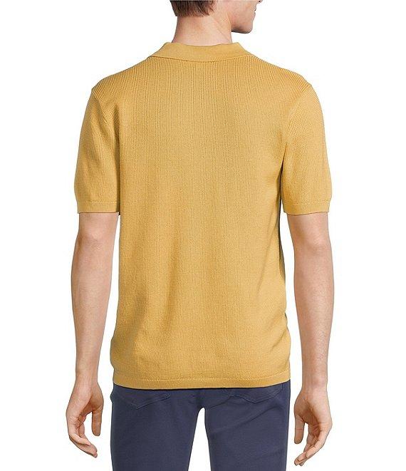 Rowm Short Sleeve Textured Solid Johnny Collar Knit Sweater Shirt