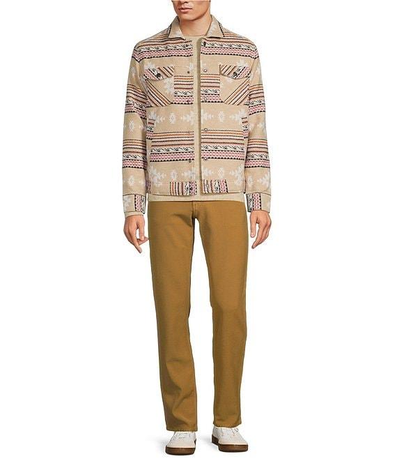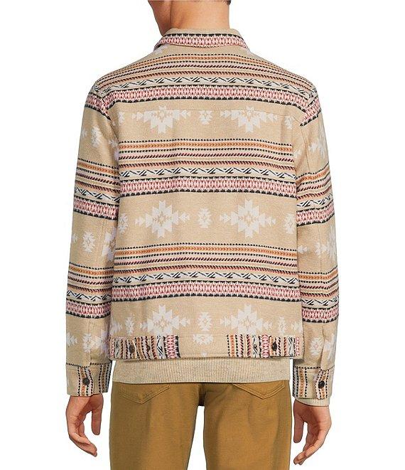 From Rowm's Taos Canyon collection, this jacket features: Southwestern jacquard pattern Point collar Long sleeves Full-snap front closure Sherpa lined Trucker style silhouette Front chest pockets with snap closure Welt hand pockets Cotton shell/polyester lining Machine wash/tumble dry Imported.