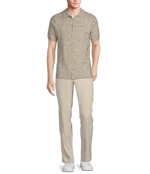 Rowm Tourister Short Sleeve Textured Heather Button Front Sweater Knit Shirt