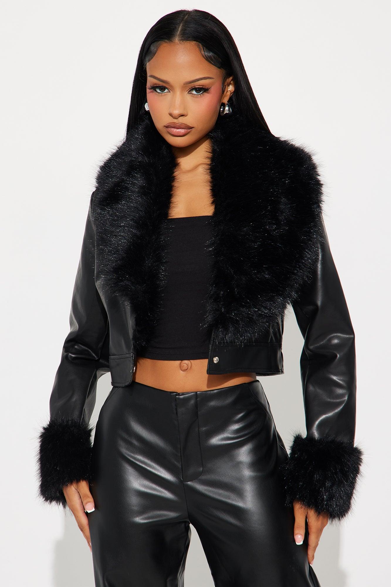 Roxanne Cropped Fur Faux Leather Coat - Black Female
