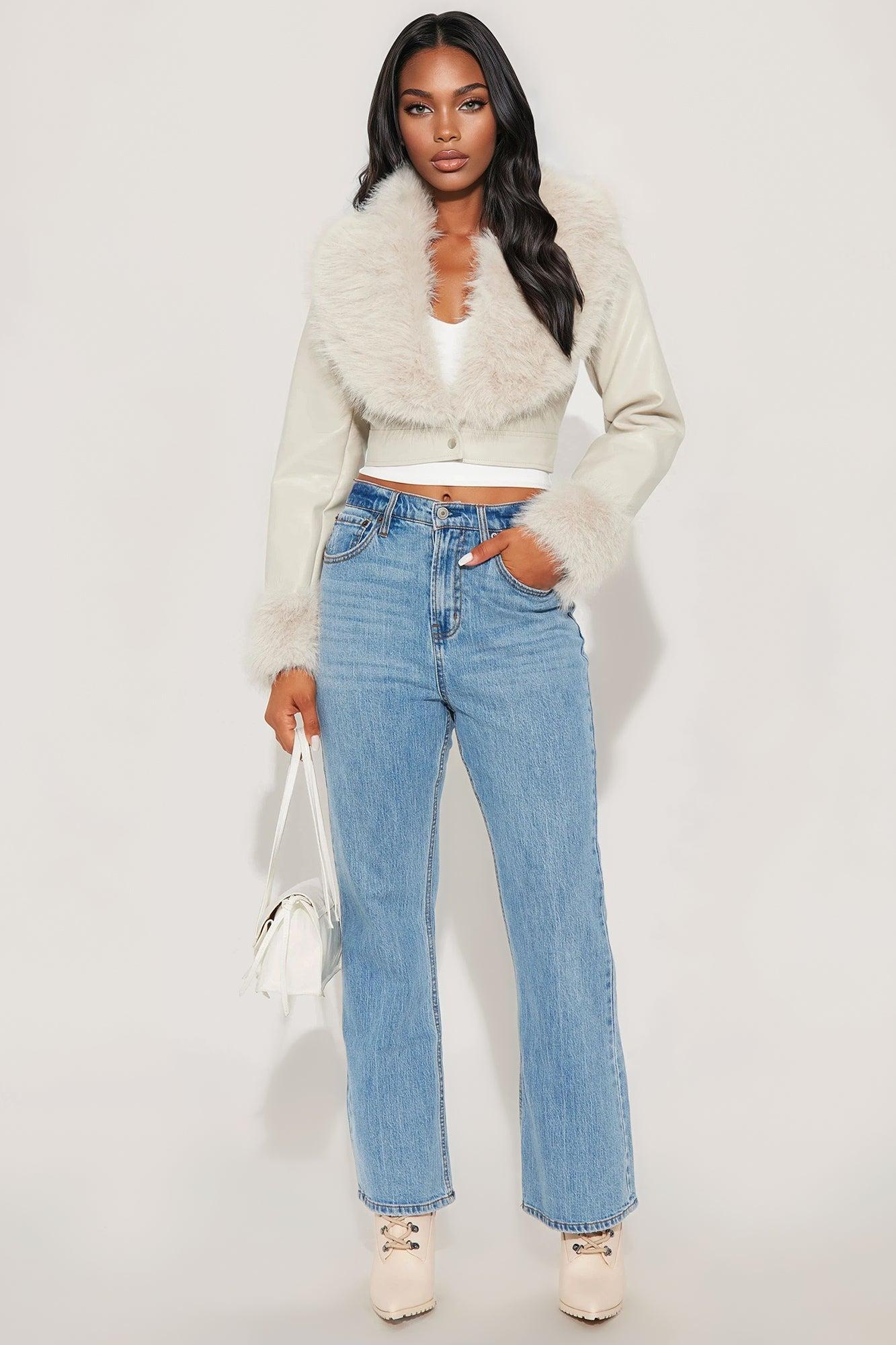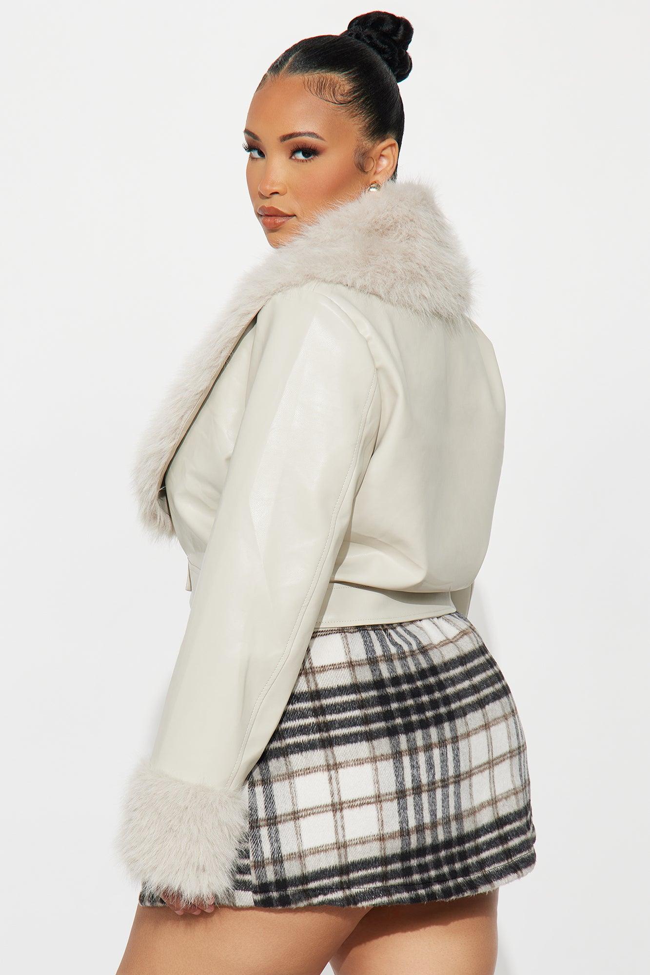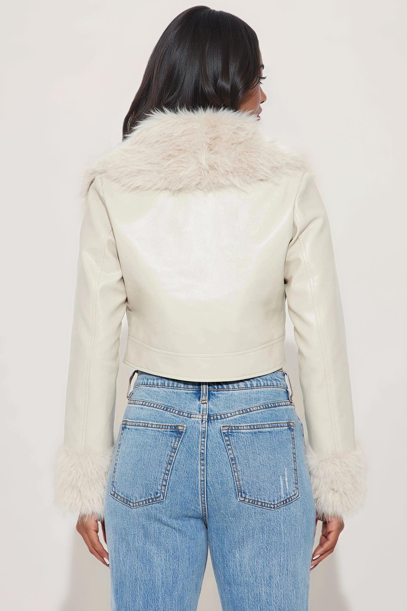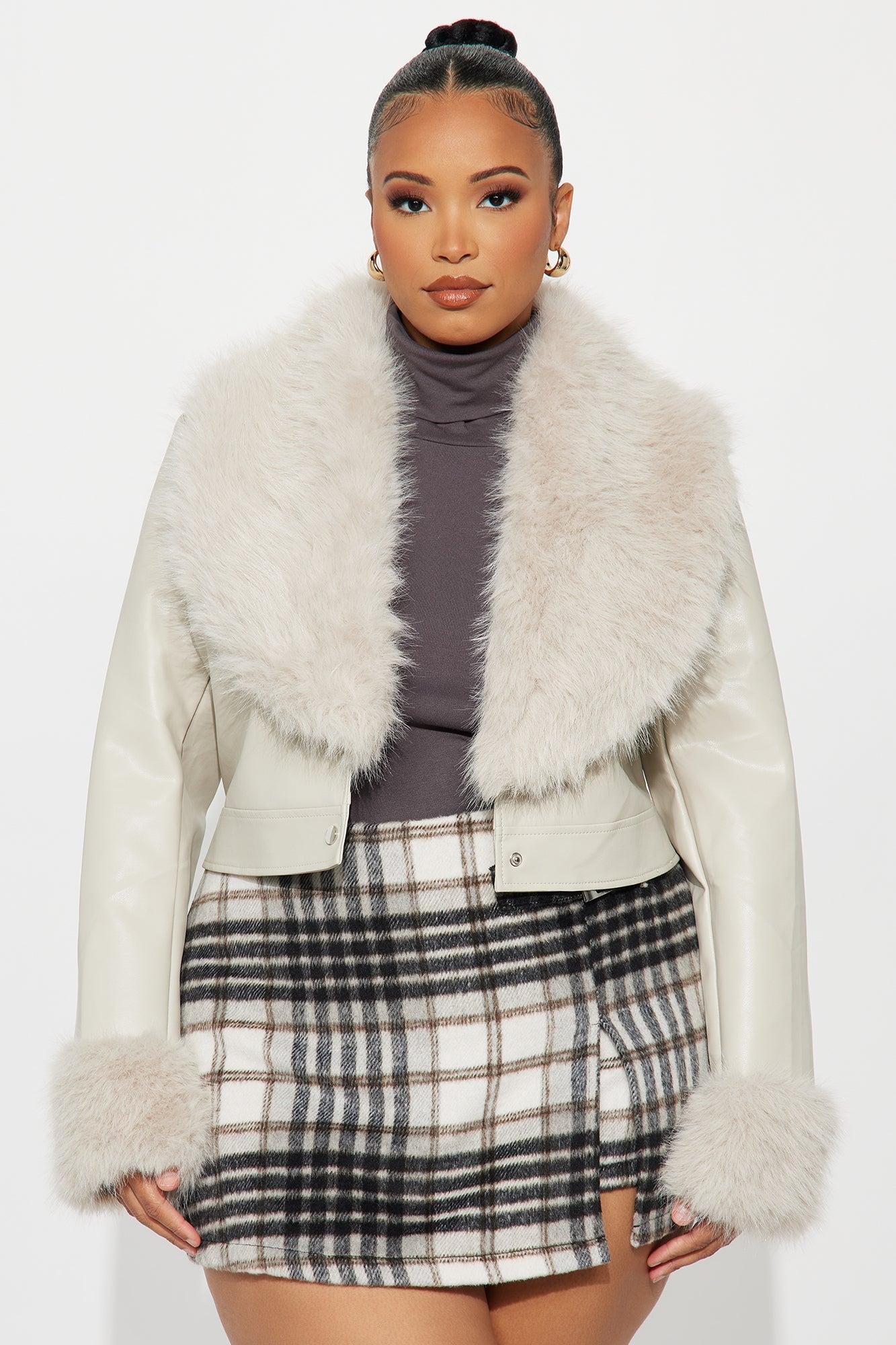 Roxanne Cropped Fur Faux Leather Coat - Stone Female