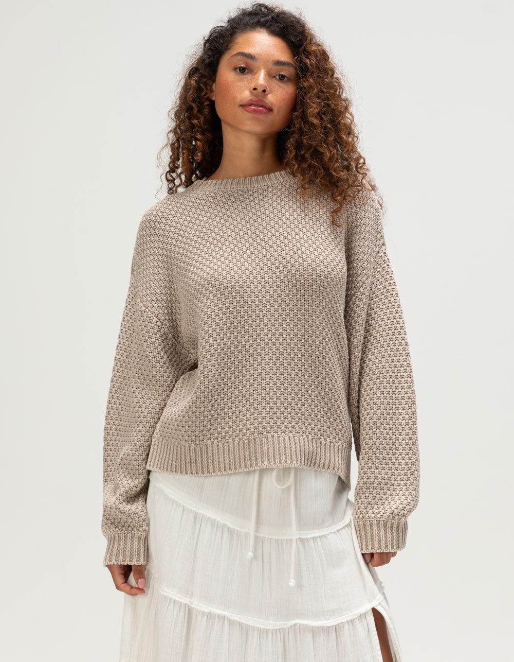 Roxy Around The Way Sweater. The Roxy Around The Way Sweater for women blends effortless style with everyday comfort. Crafted from a soft knit fabric, this cozy sweater delivers a lightweight yet warm feel, perfect for layering or wearing on its own. The classic ribbed neckline, cuffs, and hem add a touch of texture and structure, while the relaxed fit ensures easy, all-day wear. Subtle metal badge branding at the side seam offers a hint of Roxy’s signature surf-inspired flair. Whether paired with jeans for a casual outing or layered over a dress for a laid-back chic look, this sweater is a versatile wardrobe staple for every season. 100% Cotton. Machine wash. Imported.
