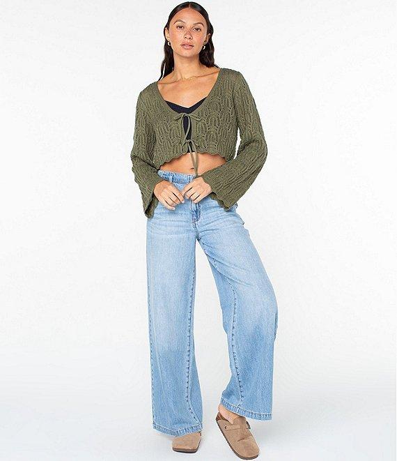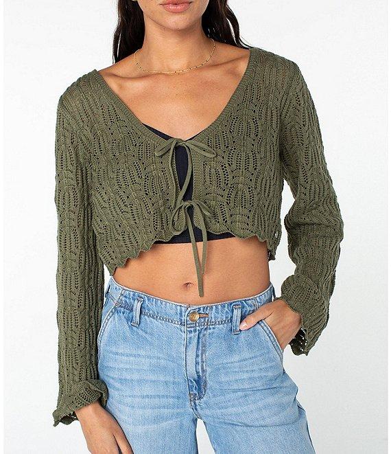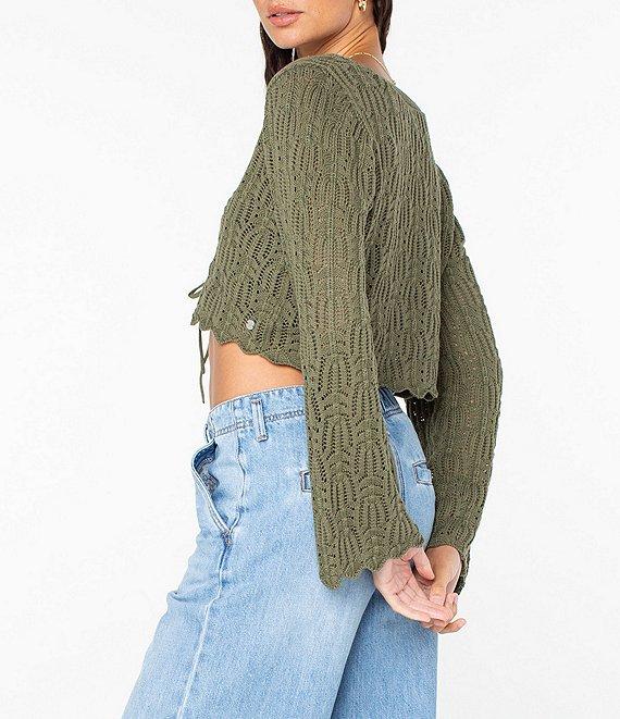 Roxy Beach Bound Crocheted Cropped Cardigan Sweater Top