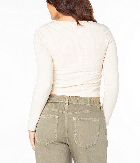 Roxy Cuddle Up Long Sleeve Button-Front Cropped T-Shirt
