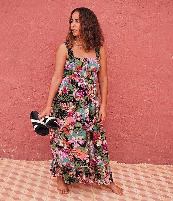 Roxy Paradise Winds Sleeveless Tropical Floral Printed A-Line Dress