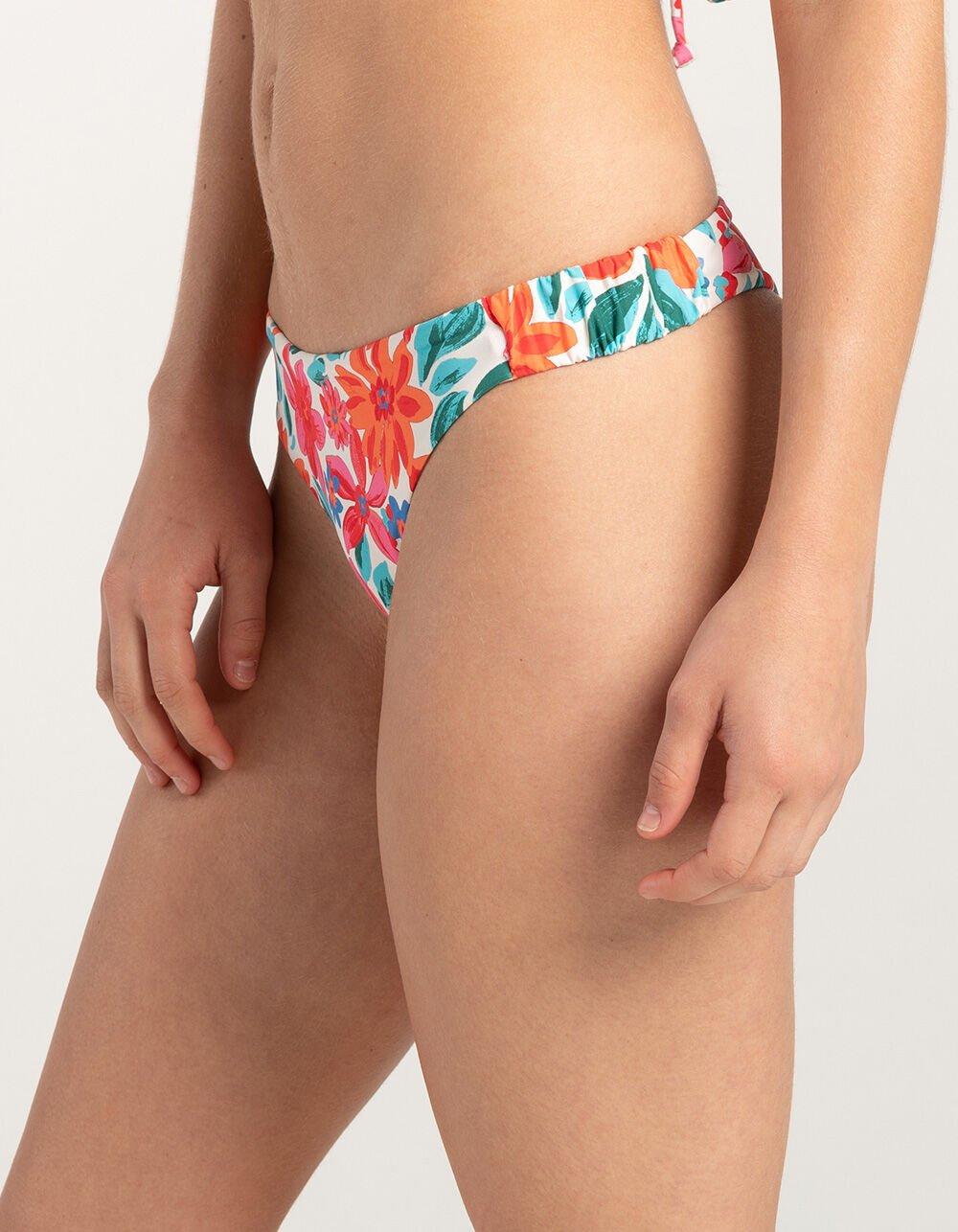 WHITE COMBO. Roxy Playa Paradise Skimpy Bikini Bottoms. Dive into the season with these playful bottoms adorned with a vibrant floral print. Skimpy coverage. Scrunchie waistband detail. Fully lined. Hand wash. Imported.
