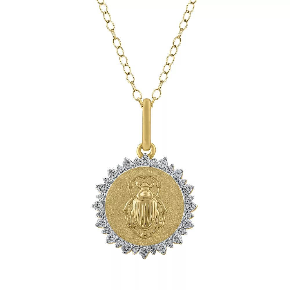 With a sparkling diamond halo and embossed medallion, this Royal Aura Sterling Silver 1/4 Carat T.W. Diamond Medallion Scarab Pendant Necklace makes for elegant and personal accessorizing. Click on this JEWELRY & WATCHES GUIDE to learn about fit, styles, materials and more! With a sparkling diamond halo and embossed medallion, this Royal Aura Sterling Silver 1/4 Carat T.W. Diamond Medallion Scarab Pendant Necklace makes for elegant and personal accessorizing. Click on this JEWELRY & WATCHES GUIDE to learn about fit, styles, materials and more! FEATURES Chain length: 18 in. Chain type: cable Clasp: lobster-claw Metal: sterling silver Finish: polished Packaging: boxed Nickel free ImportedDIAMOND DETAILS Total weight: 1/4 ct. Shape: round Setting: prong Diamond weights are approximate. Diamond Total Weights may vary between .01 and .13 ct. Some diamonds consist of fewer than 17 facets. Gemstones may have been treated to enhance their appearance. Special care may be required. Please visit our Gemstone Treatment & Special Care Guide for more information. Image(s) may be enlarged to show detail. Size: 18". Color: Gold Tone. Gender: female. Age Group: adult. Material: Gold Over Sterling.