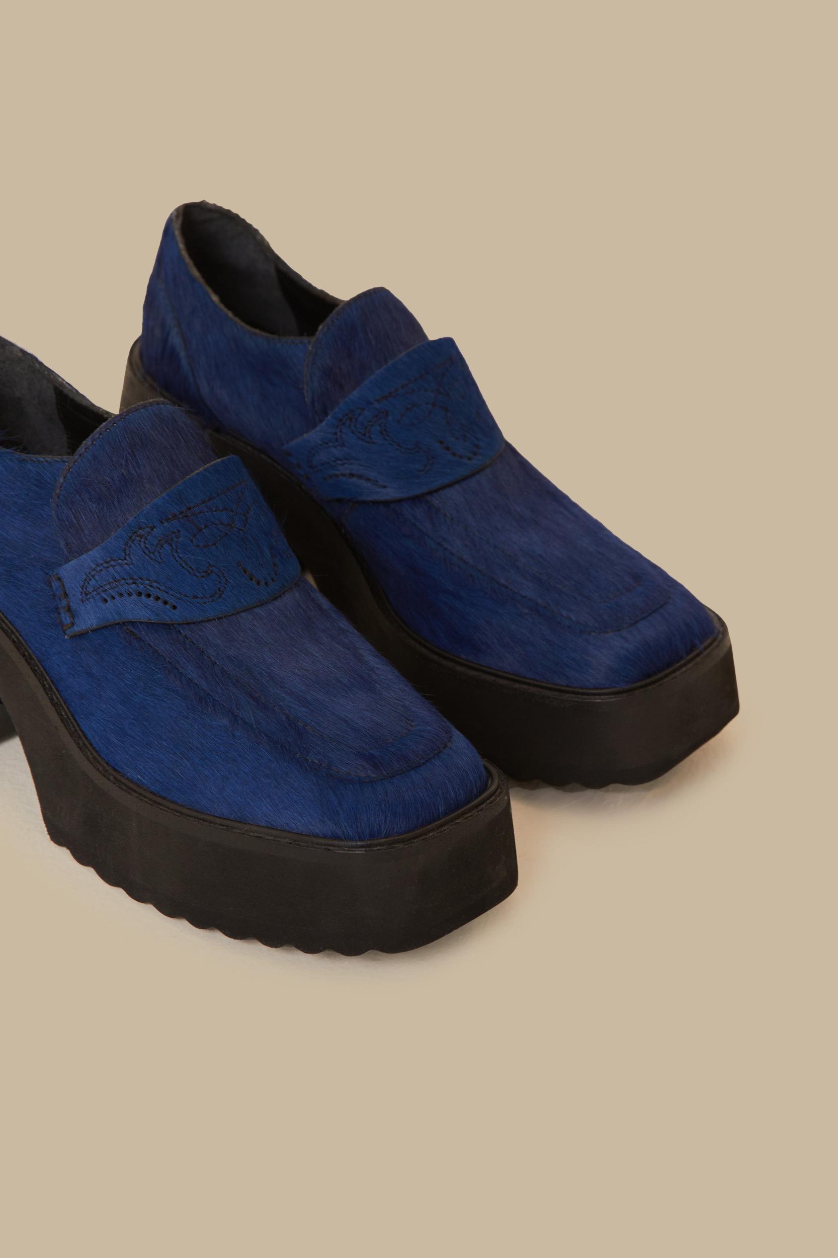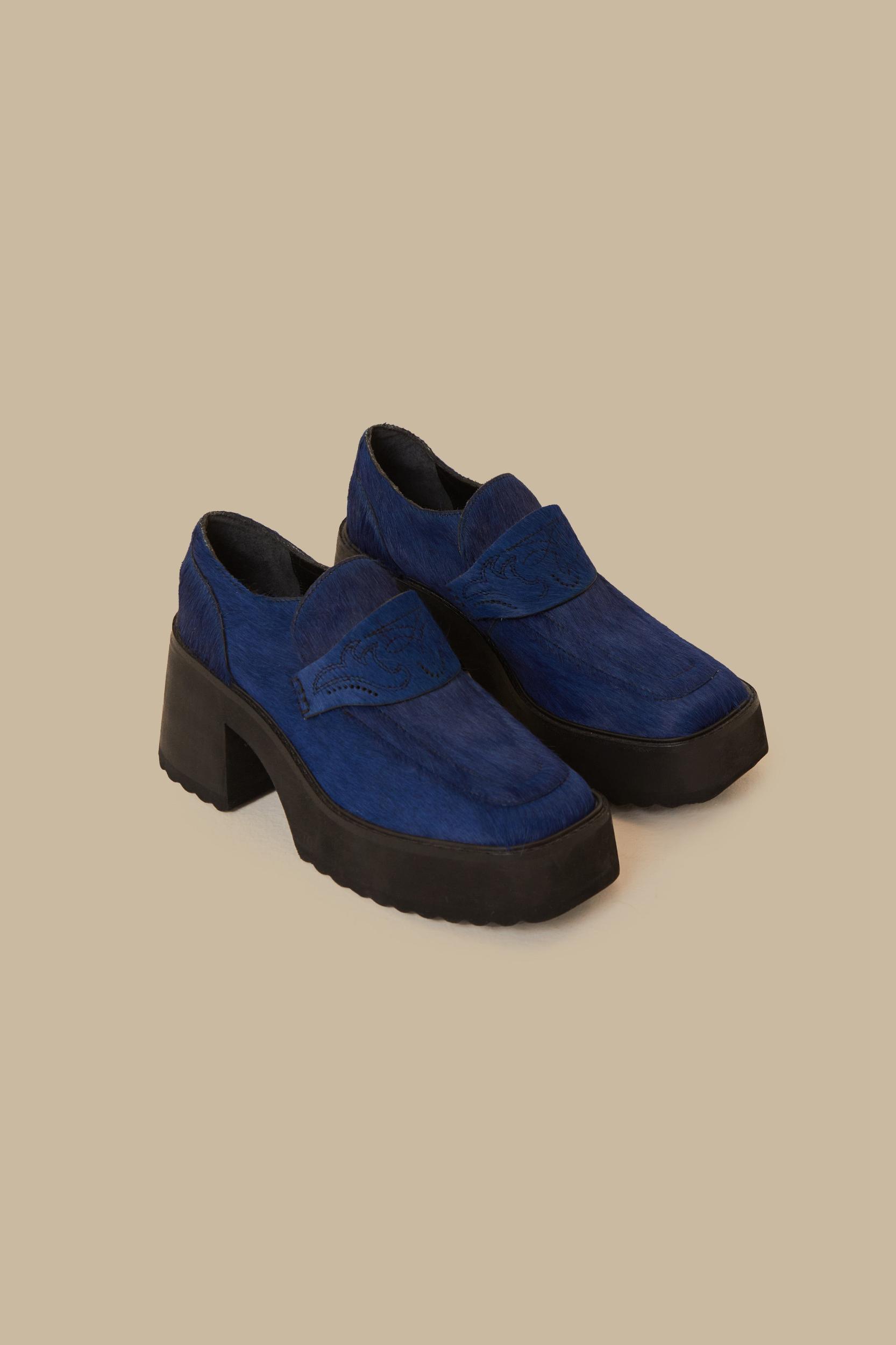 Step into style with our Royal Blue Platform Loafer, a chic and vibrant addition to any outfit. The rich royal blue hue is complemented by intricate embroidery, adding a touch of elegance to the classic loafer silhouette. Crafted from responsible materials, these loafers offer both comfort and conscious fashion. Perfect for adding a pop of color to your wardrobe, these loafers are a must-have for the fashion-forward individual. .