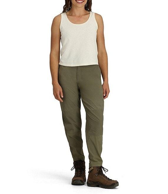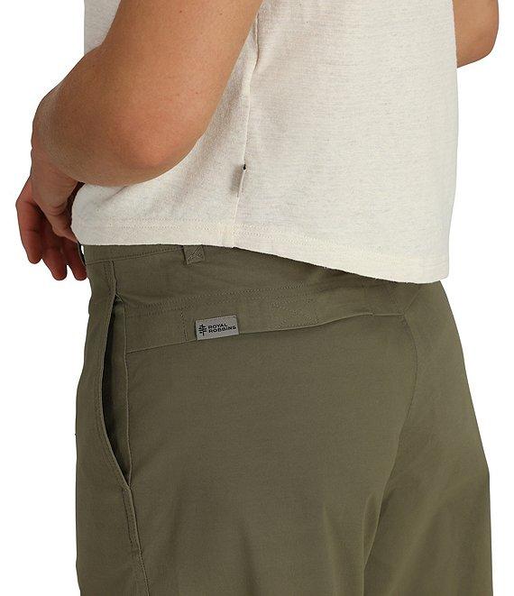 From Royal Robbins, these pants features: Stretch weave woven fabrication Flat front silhouette High rise waist Barrel leg fit Two drop in side seam pockets Two reverse-entry back pockets with hook and loop closure One zip secure leg pocket Mosquito protection technology Double layered at the knees for durability Snap/zip fly closure Approx. 28" short inseam; 30" regular inseam Recycled nylon/elastane Machine wash Imported.