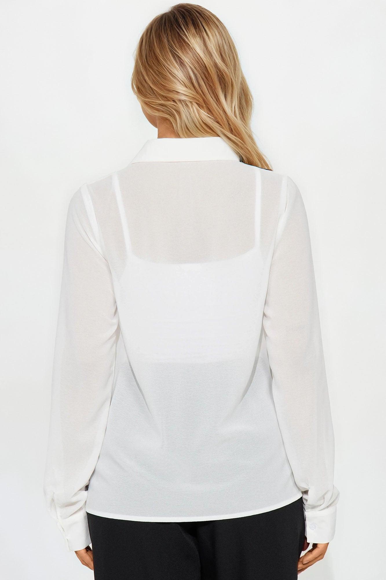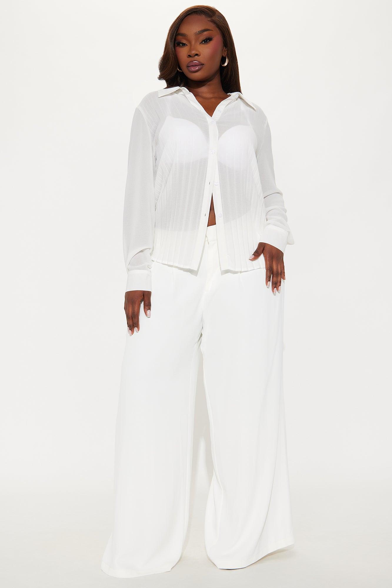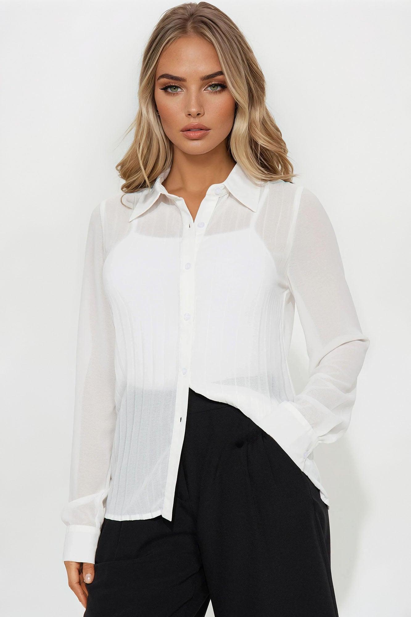 Available In White And Blush. Chiffon Shirt Pleated Detail Button Up Non Stretch 100% Polyester Imported