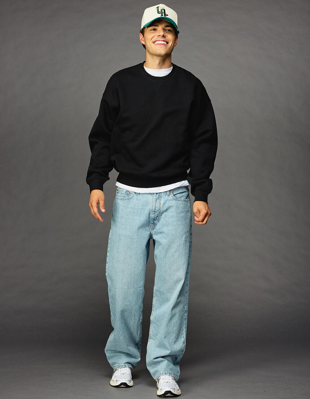 RSQ Baggy Jeans. Traditional 5-pocket styling. Button closure with zipper fly. Belt loop waist. Baggy fit. Approximate leg opening: 16". 100% Cotton. Machine wash. Imported.