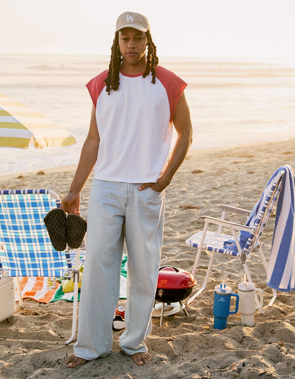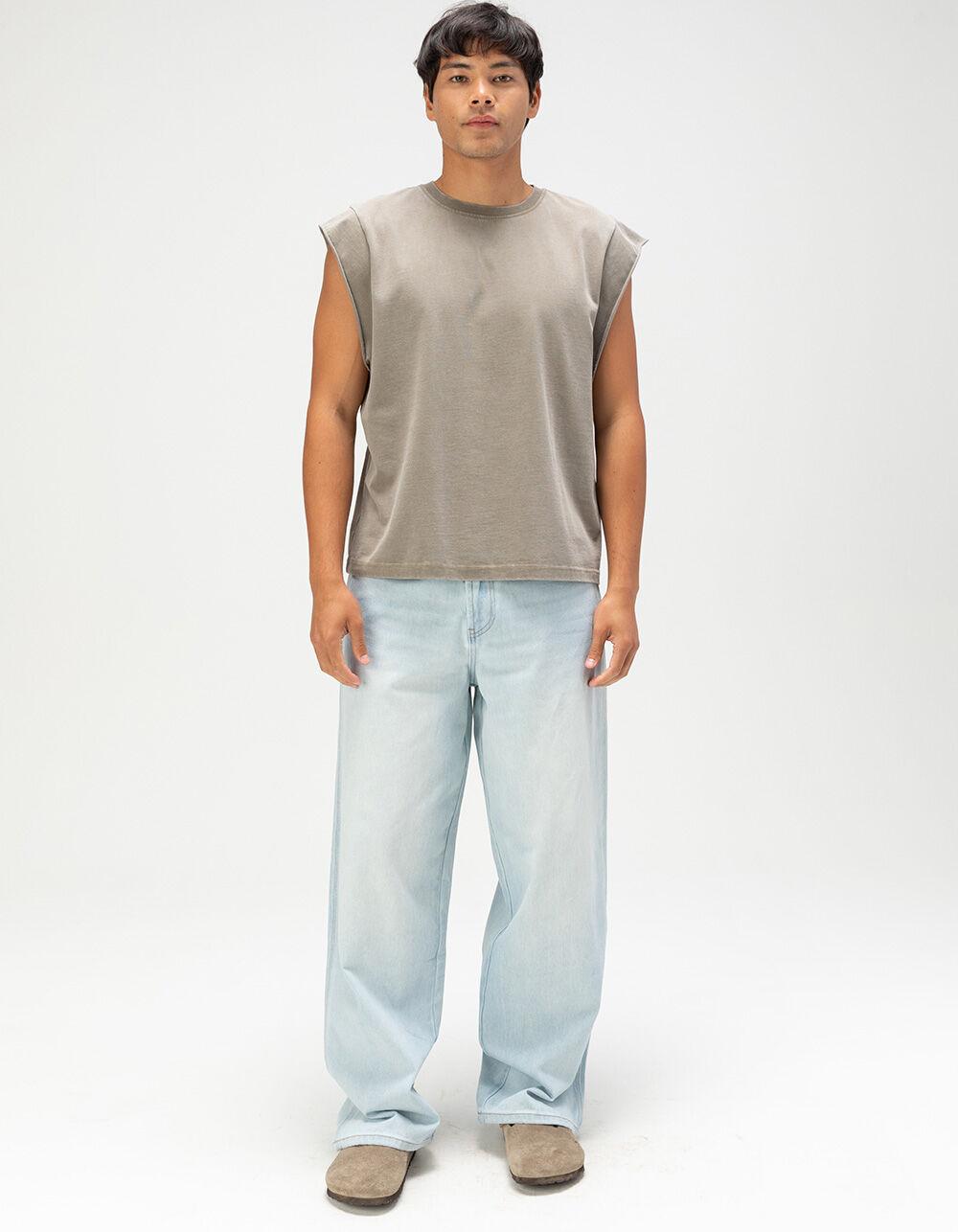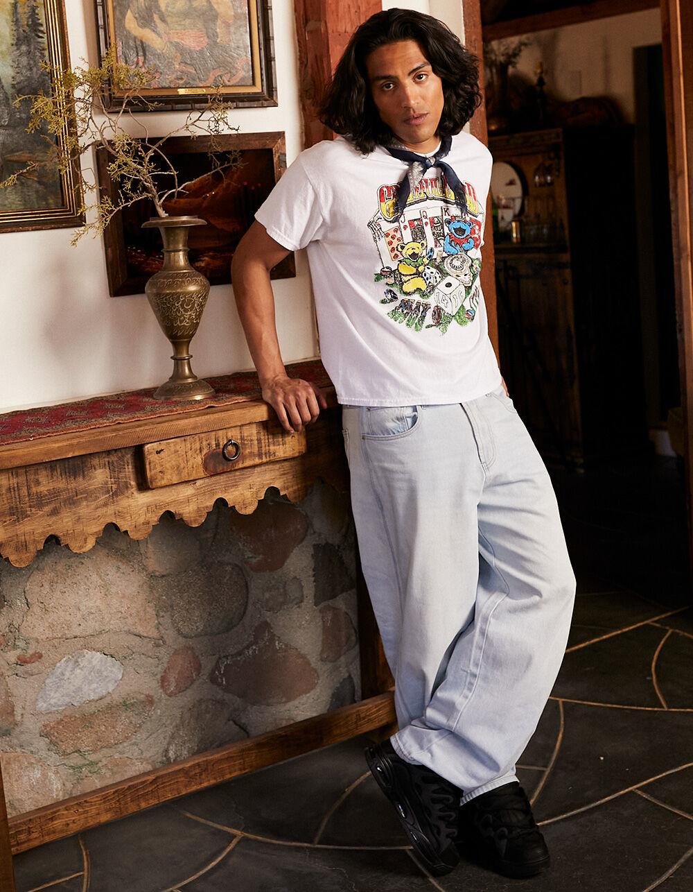 RSQ Extra Baggy Jeans. Traditional 5-pocket denim styling. Button closure with zip fly. Belt loop waistband. Extra baggy fit. Light stone wash. Approximate leg opening: 20". Approximate inseam: 32". 93% Cotton 4% Polyester 3% Rayon. Machine wash. Imported.
