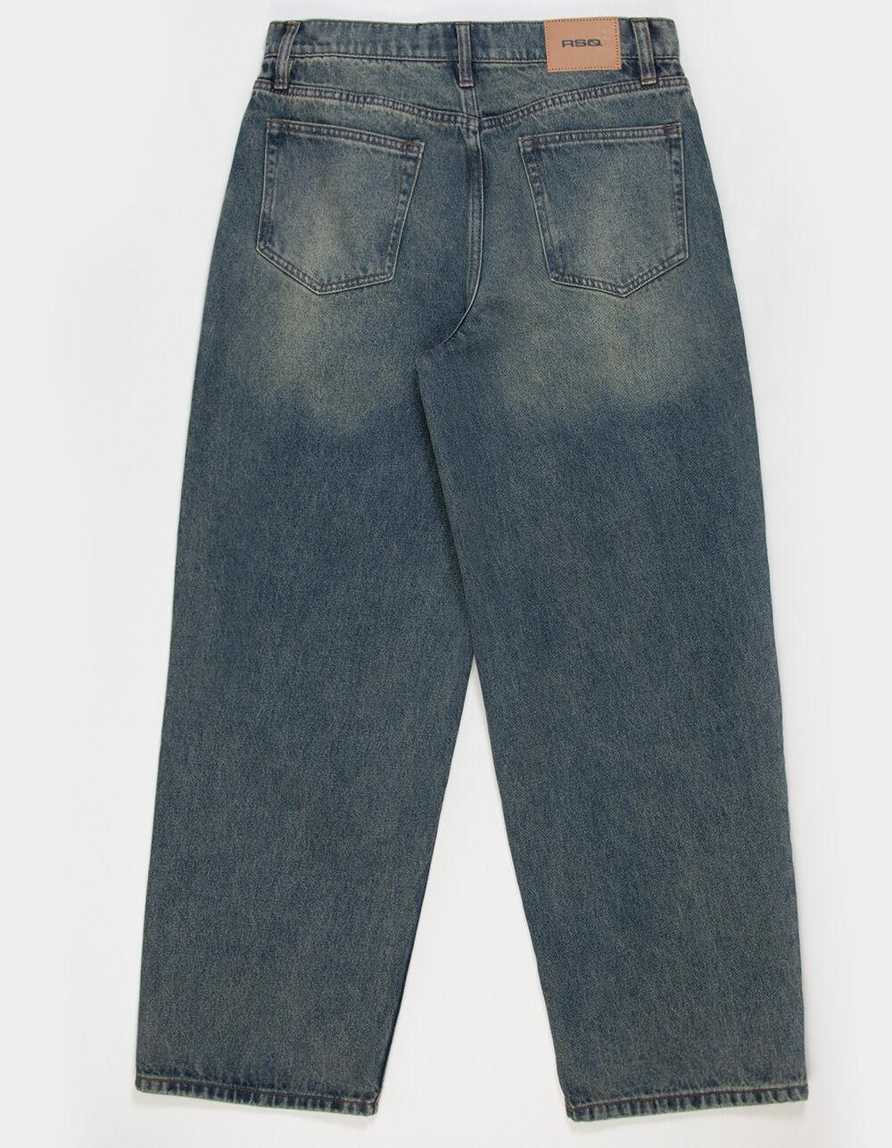 RSQ Extra Baggy Patch Jeans. The RSQ Extra Baggy Patch Jeans deliver bold, street-ready style with a relaxed, oversized silhouette. Designed with classic 5-pocket denim styling, these jeans feature a button closure with zip fly and belt loops for everyday functionality. The extra baggy fit creates a laid-back look, while graphic patches on the front right leg add standout visual detail. Finished with an approximate 18" leg opening and a 31" inseam (size 29), these jeans pair perfectly with tees, hoodies, or statement layers for an on-trend, expressive outfit. 91% Cotton 5% Rayon 4% Other Fibers. Machine wash. Imported.