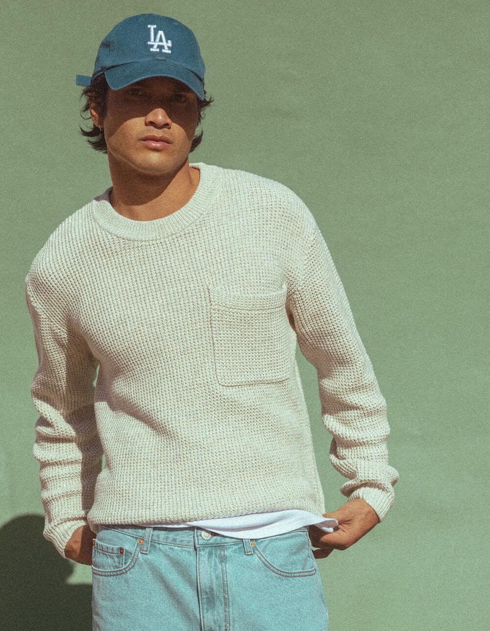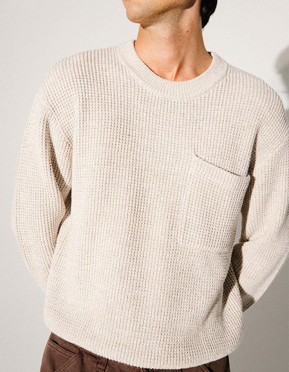 OATMEAL. RSQ Heathered Sweater. This heathered knit sweater features a left chest pocket. Crew neck. Cuffed long sleeves and hem. Ribbed at collar, cuffs and hem. 100% Cotton. Machine wash. Imported.