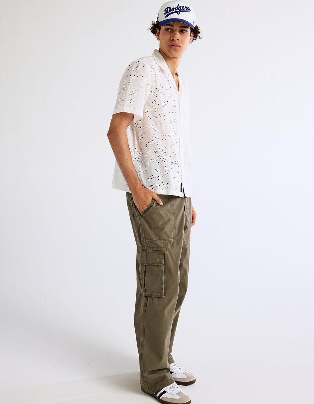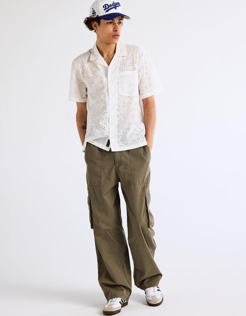 RSQ Loose Cargo Pull On Pants. Elastic waist. Button closure with zipper fly. Cargo pockets on both legs. Slant hand pockets. Dual back pockets. Loose fit. 100% Cotton. Machine wash. Imported.