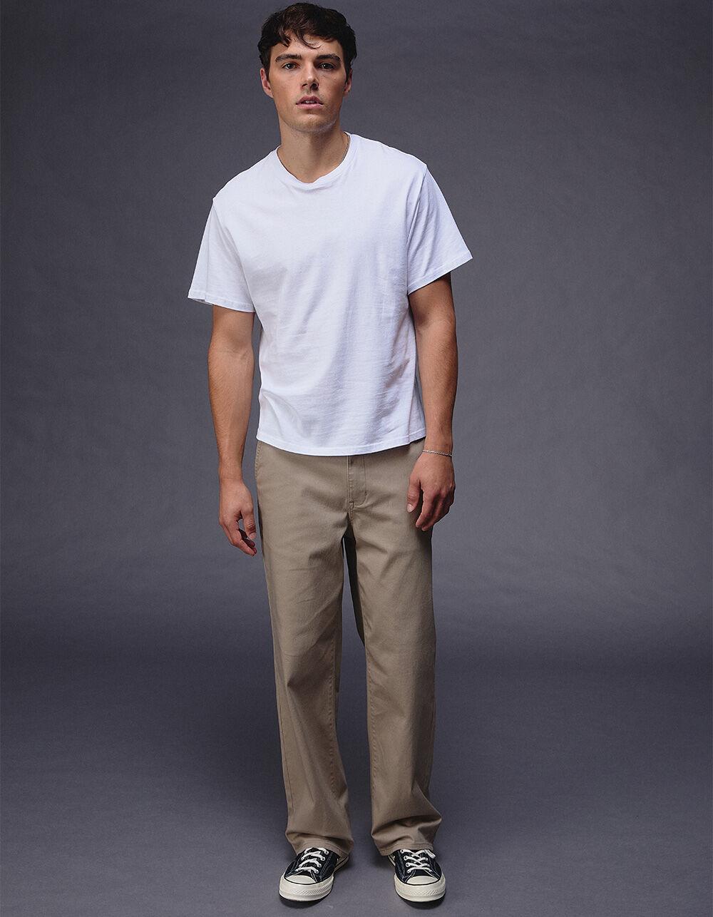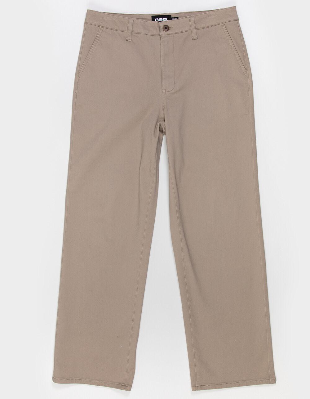 RSQ Loose Fit Stretch Chino Pants. Slant pockets. Dual back pockets. Woven label at back left pocket. Button closure paired with zipper fly. Belt loop waist. Loose fit. Approximate leg opening: 18". 97% Cotton 3% Spandex. Machine wash. Imported.