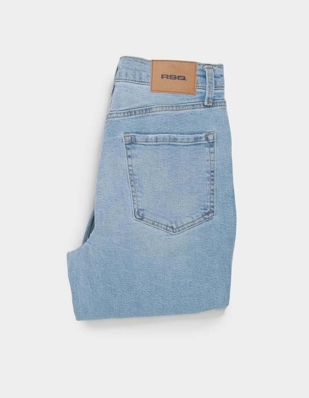 RSQ Loose Jeans. The RSQ Men’s Loose Jeans are all about comfort and laid-back style. With a loose fit, these jeans give you the freedom to move while still looking fresh. Designed with a classic 5-pocket style, they’ve got plenty of room for your essentials, and the button closure with zip fly ensures a secure fit every time. The belt loop waist lets you add your favorite belt for a personalized touch. Featuring a light denim wash and an approximate 16" leg opening, these jeans are perfect for rocking a casual, street-ready look. Whether you’re kicking back or out on the go, these jeans have got you covered. 99% Cotton 1% Spandex. Machine wash. Imported.