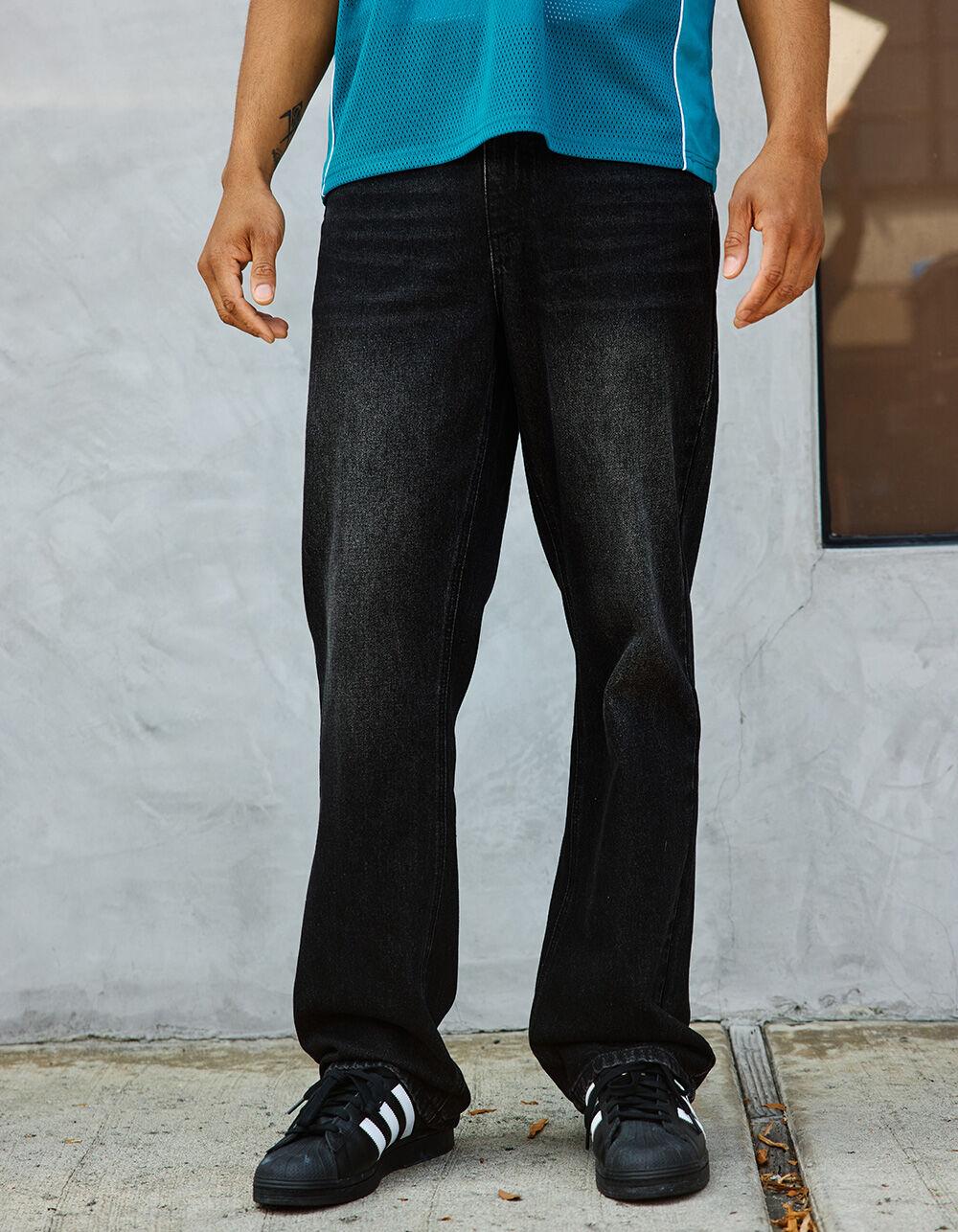 RSQ Relaxed Bootcut Jeans. 5-pocket denim styling with slight distressing. Button closure with zip fly. Belt loop waist. Relaxed fit. Bootcut style. Approximate leg opening: 18". Medium wash. 90% Cotton 8% Rayon 2% Other Fibers. Machine wash. Imported.