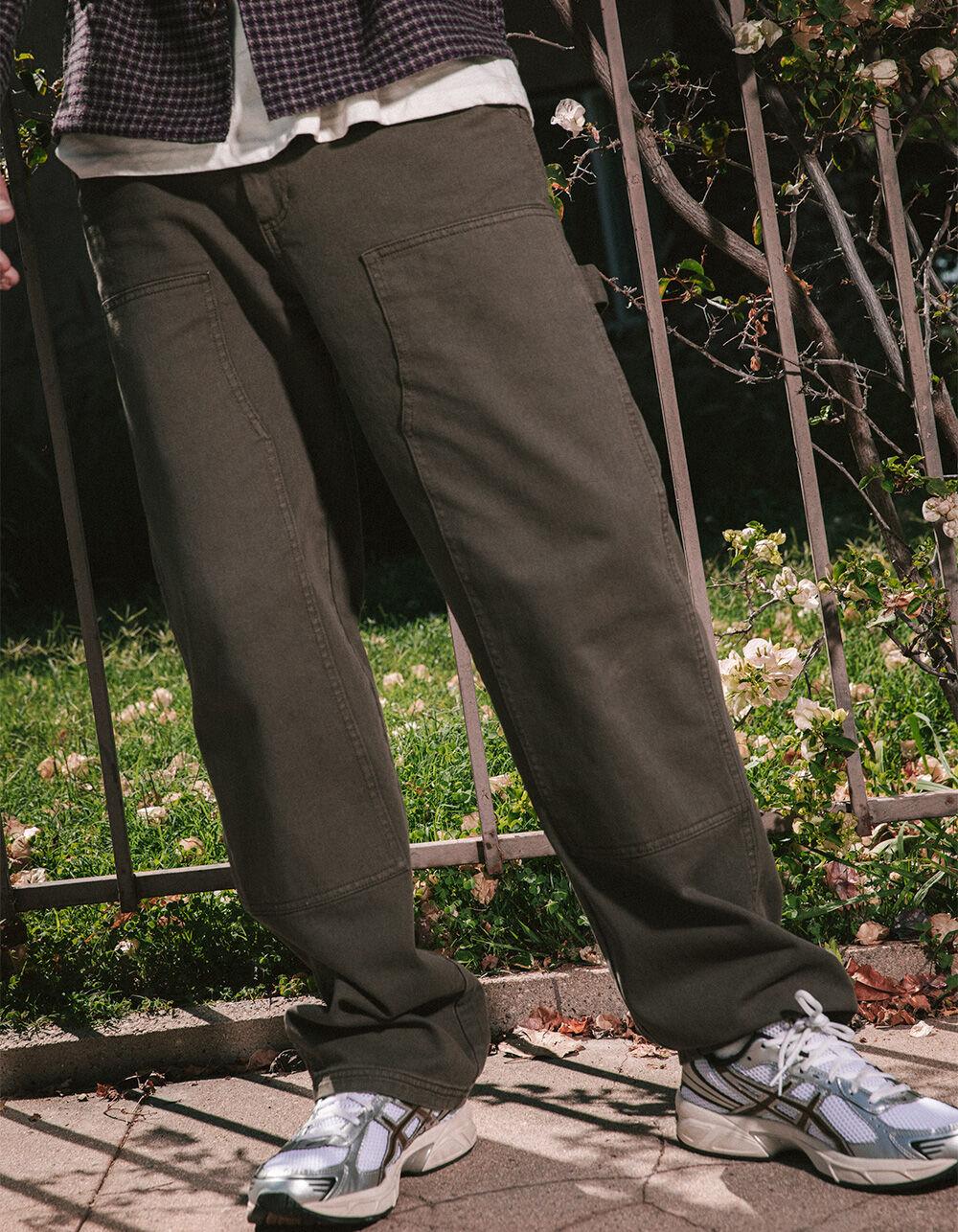 RSQ Straight Twill Utility Pants. Button waist paired with zipper fly. Double layer knee patches. Slant pockets with coin pocket at right front pocket. Back patch pockets. Carpenter pockets on right leg. Hammer loop on left leg. Straight leg fit. 100% Cotton. Machine wash. Imported.