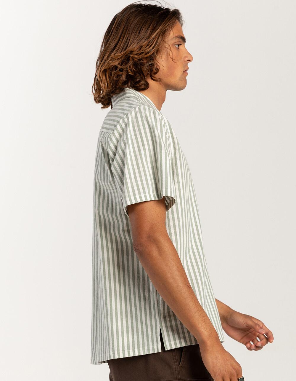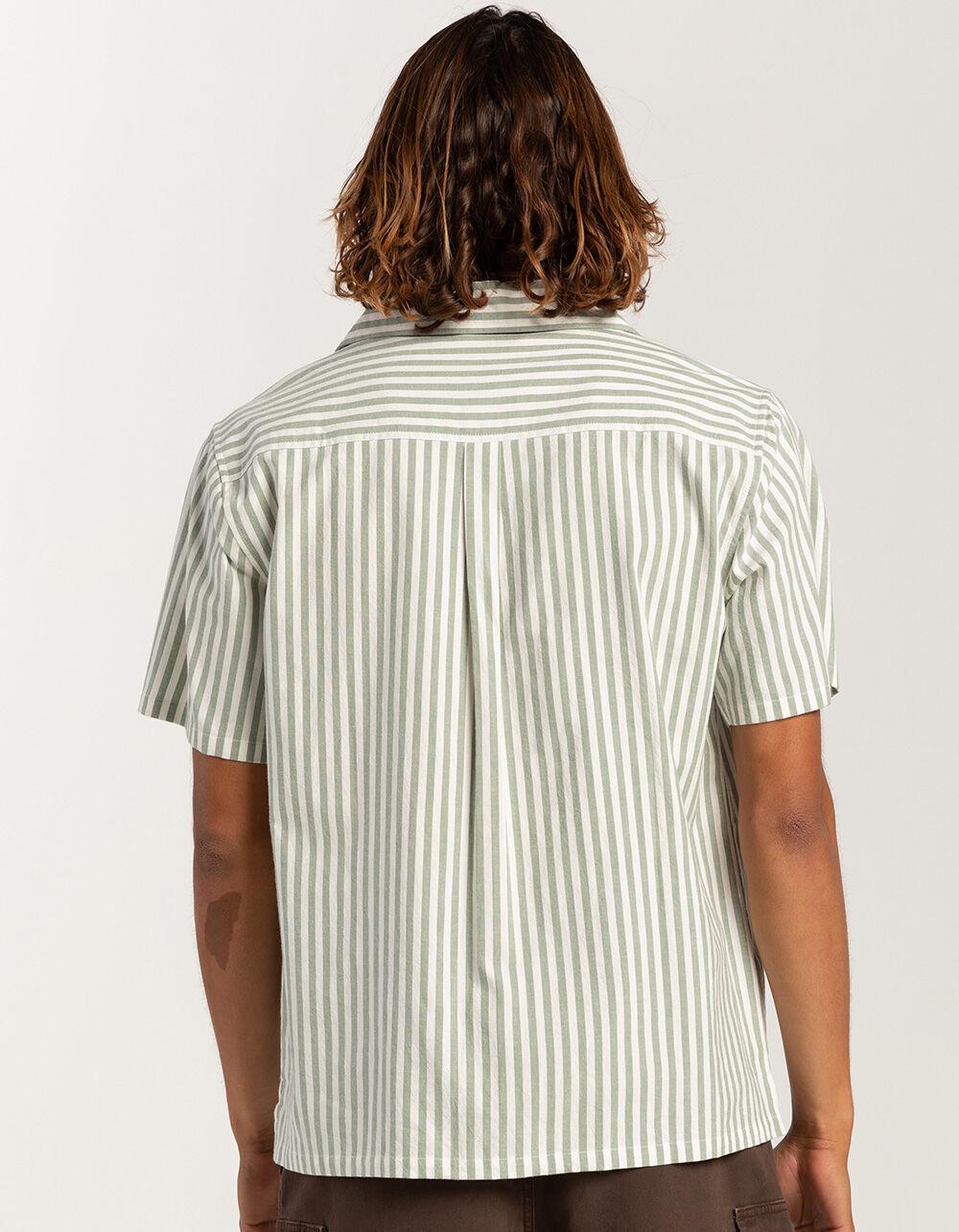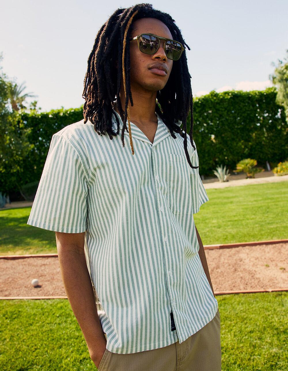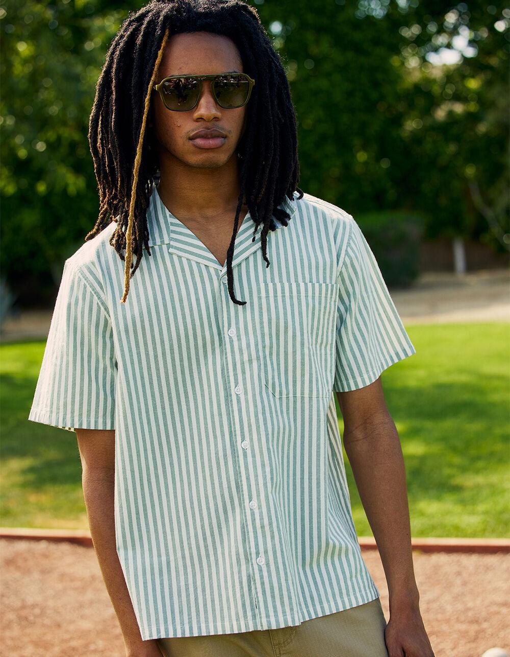 RSQ Stripe Oxford Camp Shirt. This shirt features timeless stripes, adding a touch of refined charm to your wardrobe. The camp shirt design brings a casual and laid-back vibe, making it a versatile piece for a range of occasions. The button-front closure ensures easy wear, while the chest pocket enhances both functionality and visual appeal. Straight hem. Notch collar. 100% Cotton. Machine wash. Imported.
