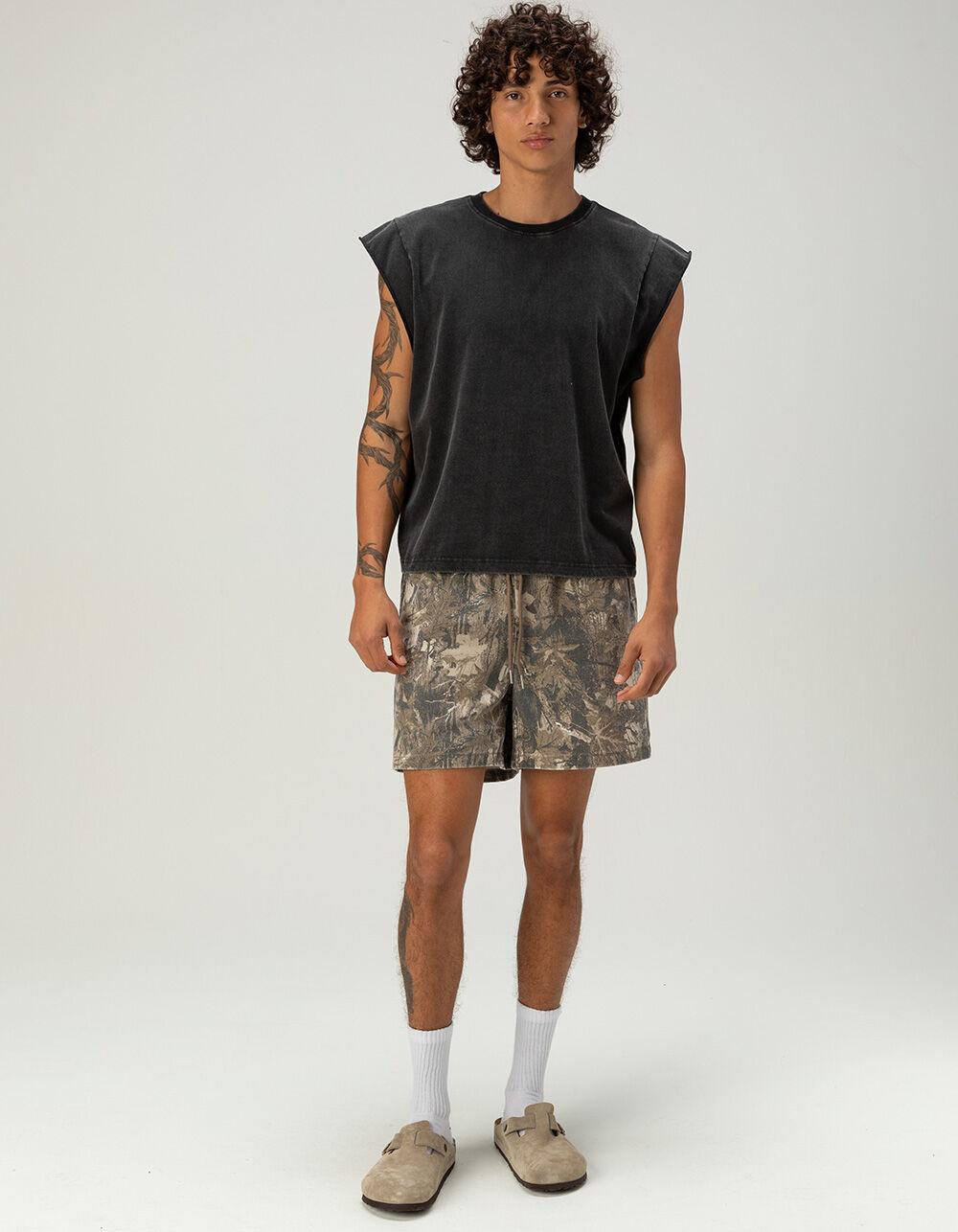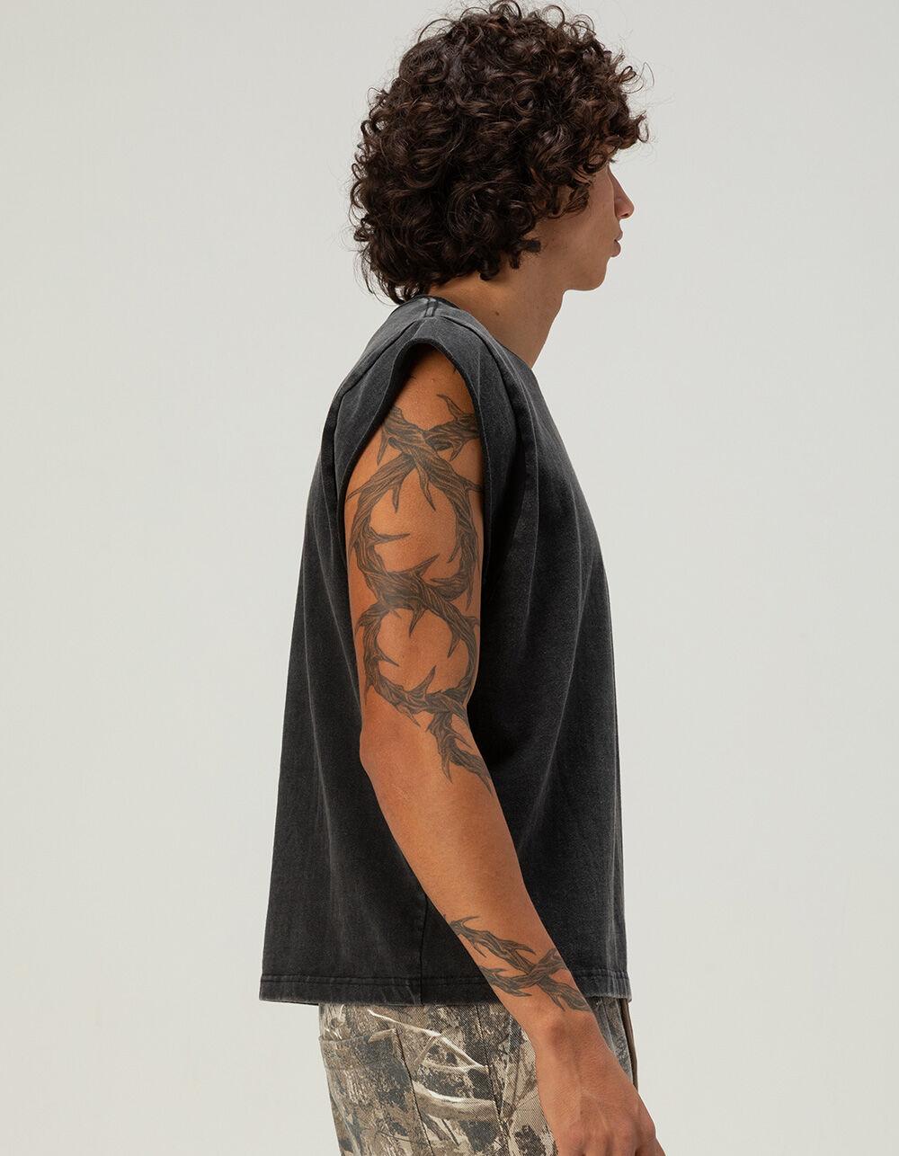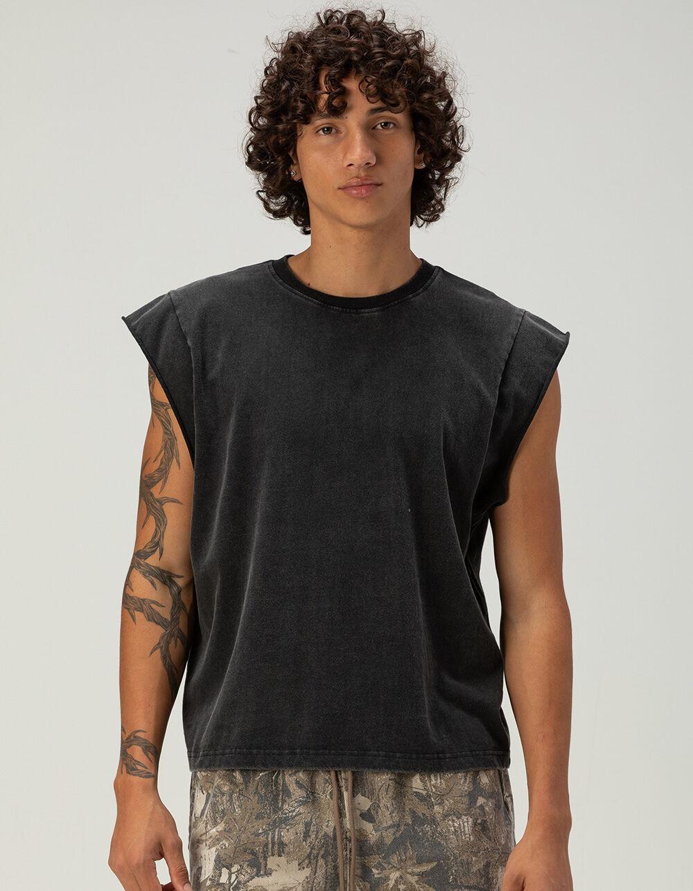 RSQ Mens Washed Cropped Muscle Tee - BLACK