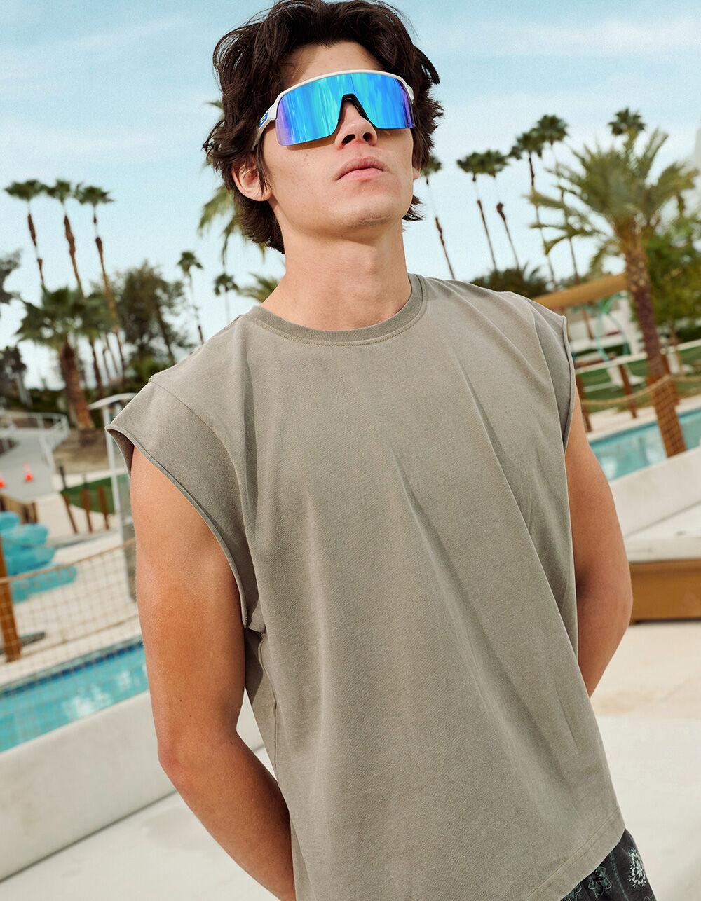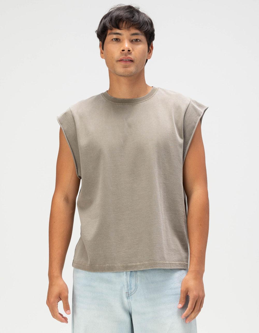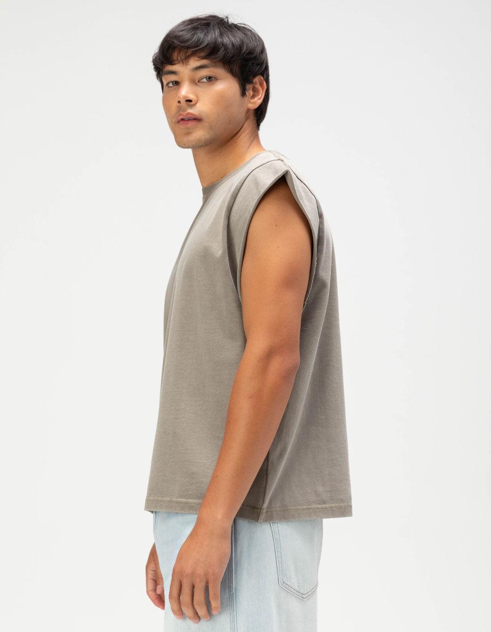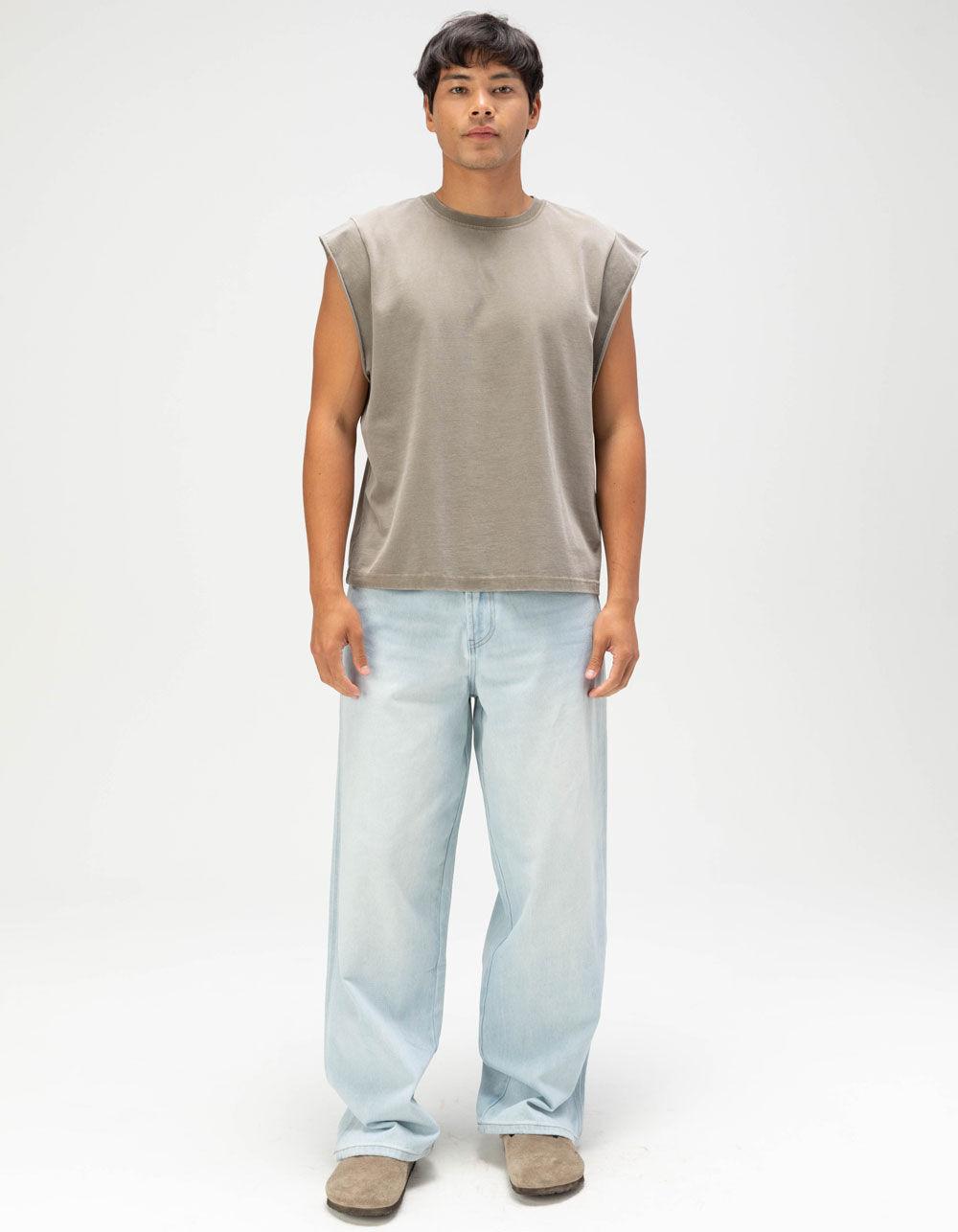 RSQ Mens Washed Cropped Muscle Tee - OLIVE