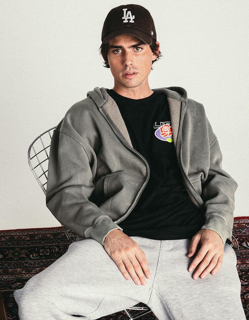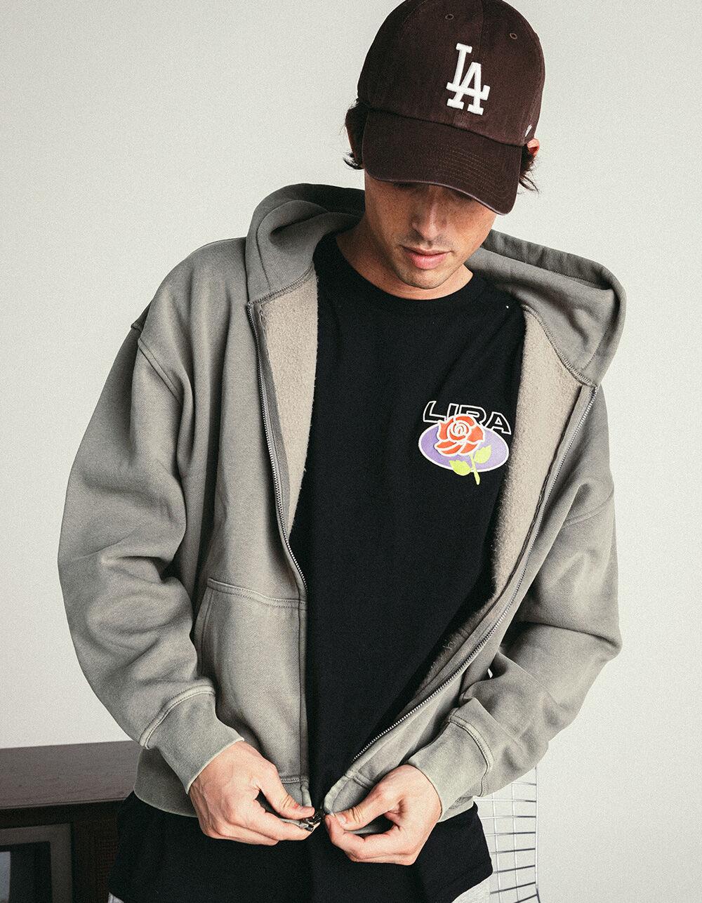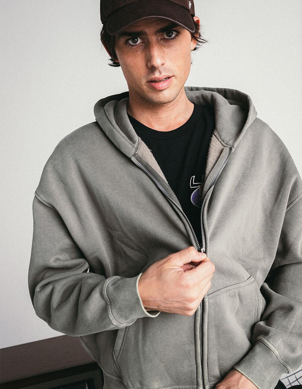 RSQ Mens Washed Zip-Up Oversized Hoodie - BLACK