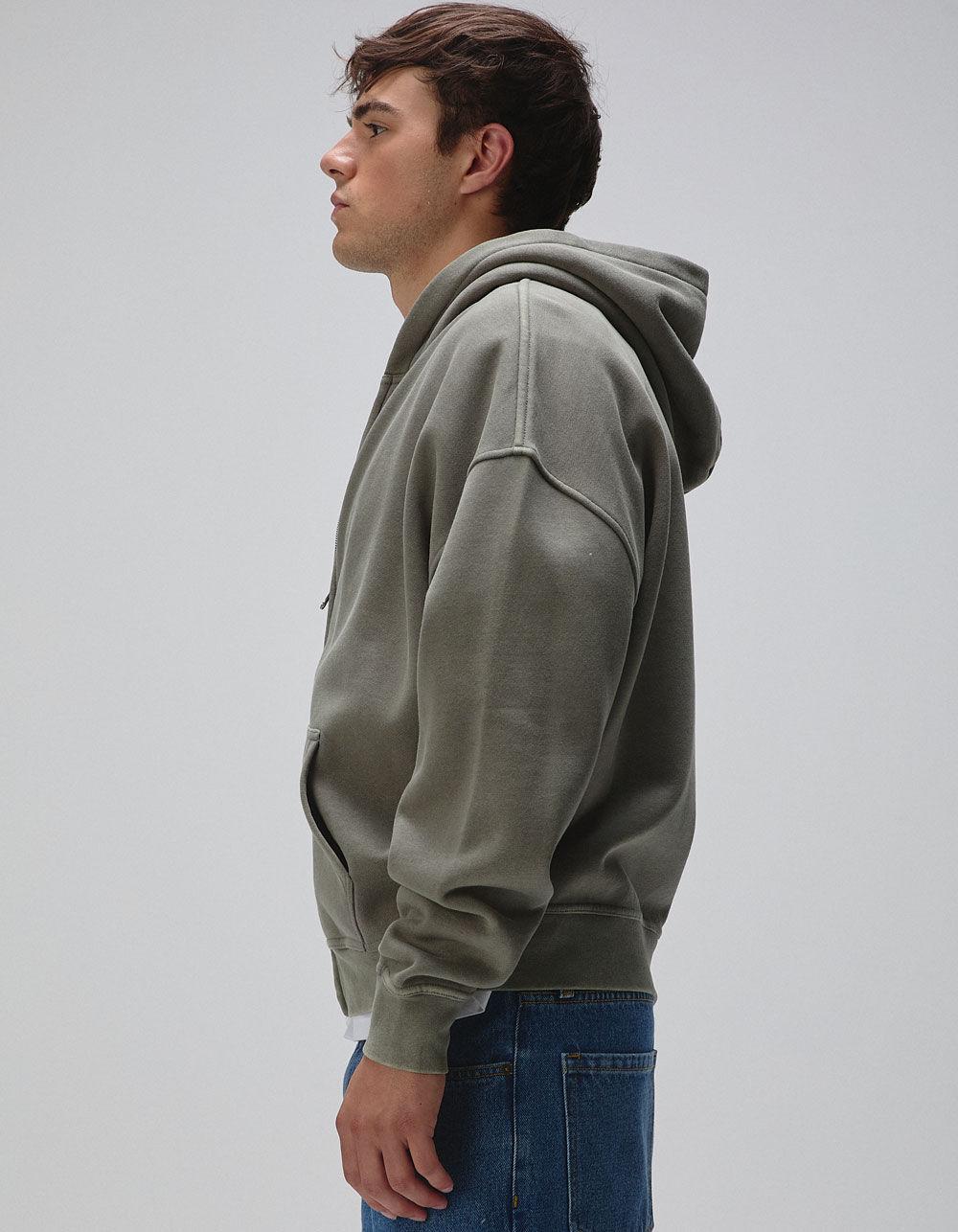 RSQ Mens Washed Zip-Up Oversized Hoodie - OLIVE