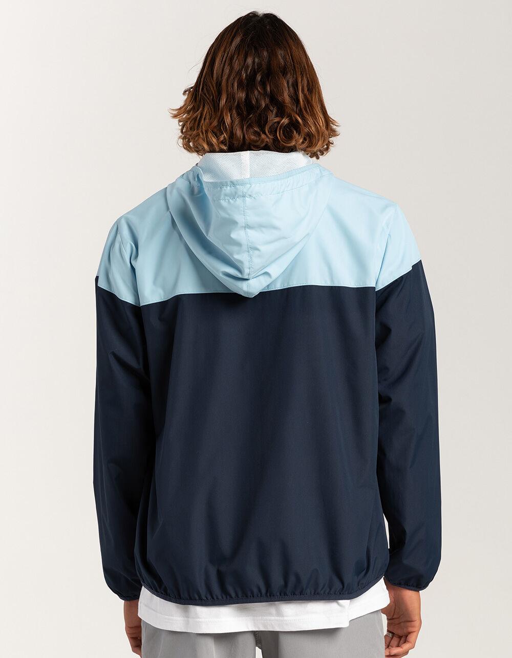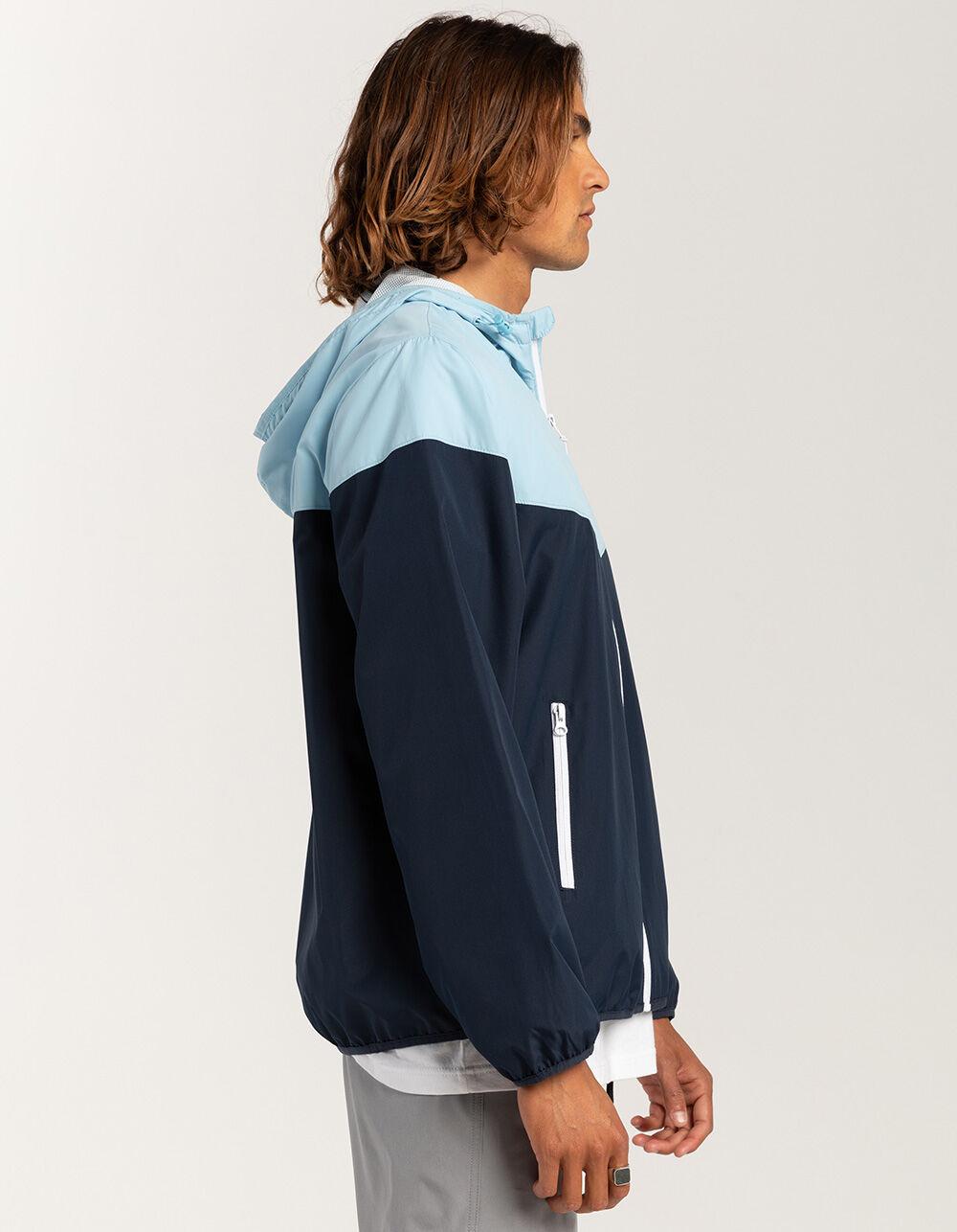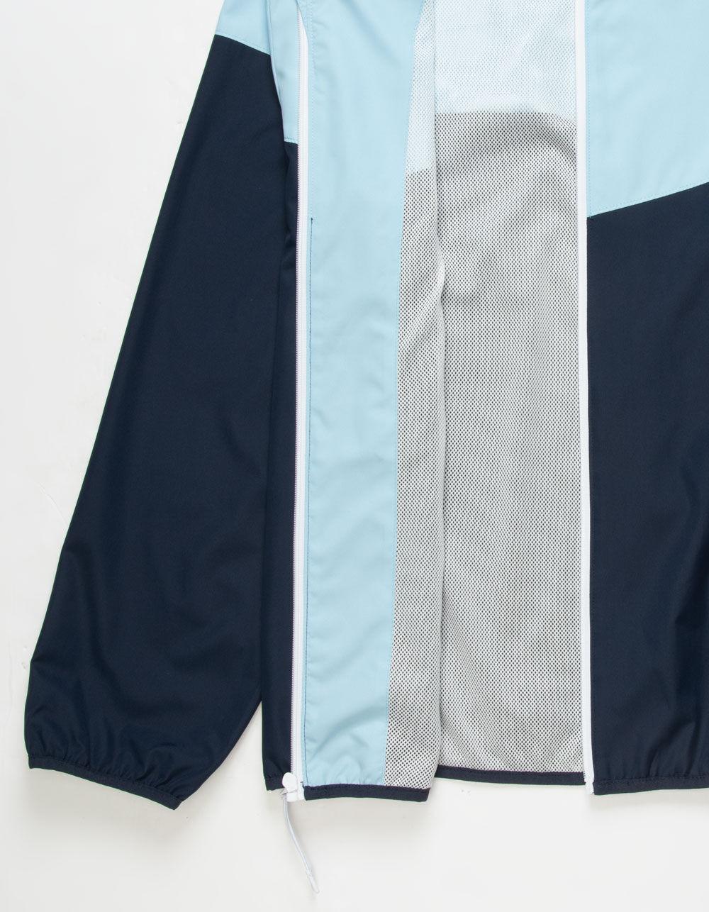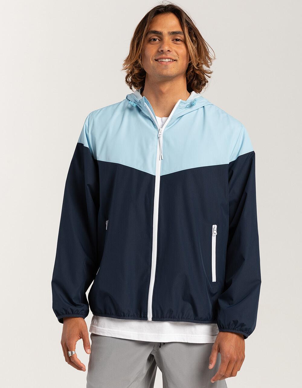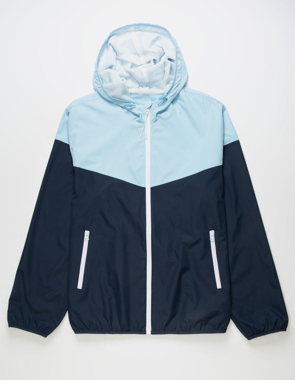 RSQ Windbreaker Jacket. Crafted from durable and lightweight materials, the windbreaker jacket is designed to protect you from the wind and light rain while ensuring breathability and comfort. It features a zip-up front, a hood for added coverage, and zippered pockets for convenience. Two toned color bock design. 100% Polyester. Machine wash. Imported.