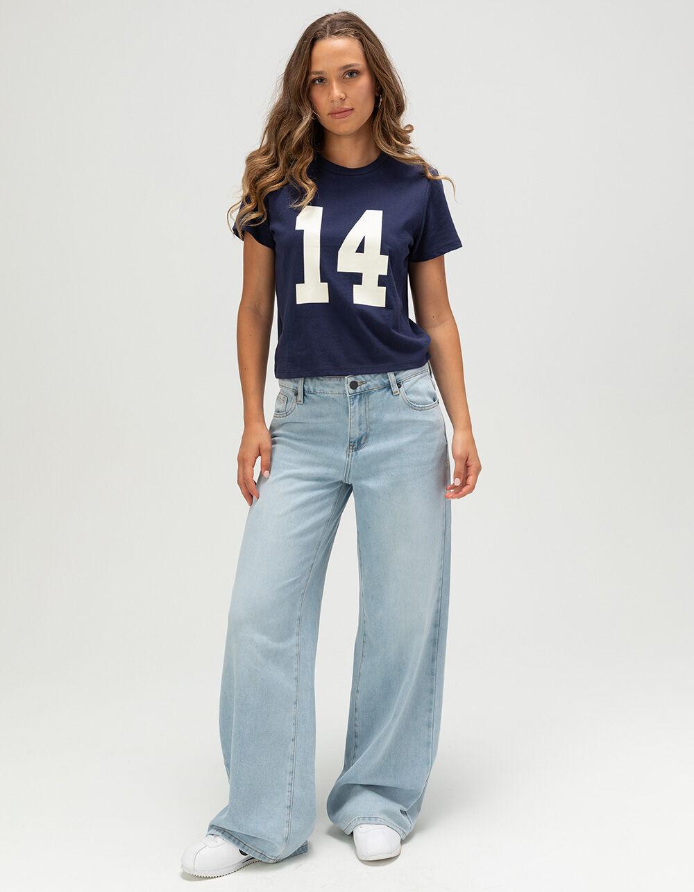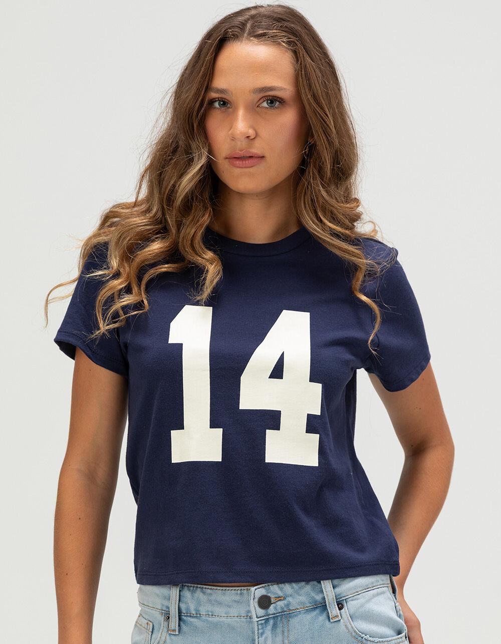 RSQ 14 Baby Tee. large 14 screened on front. Baby tee silhouette. Crew neck. Short sleeve. 100% Cotton. Machine wash. Imported.