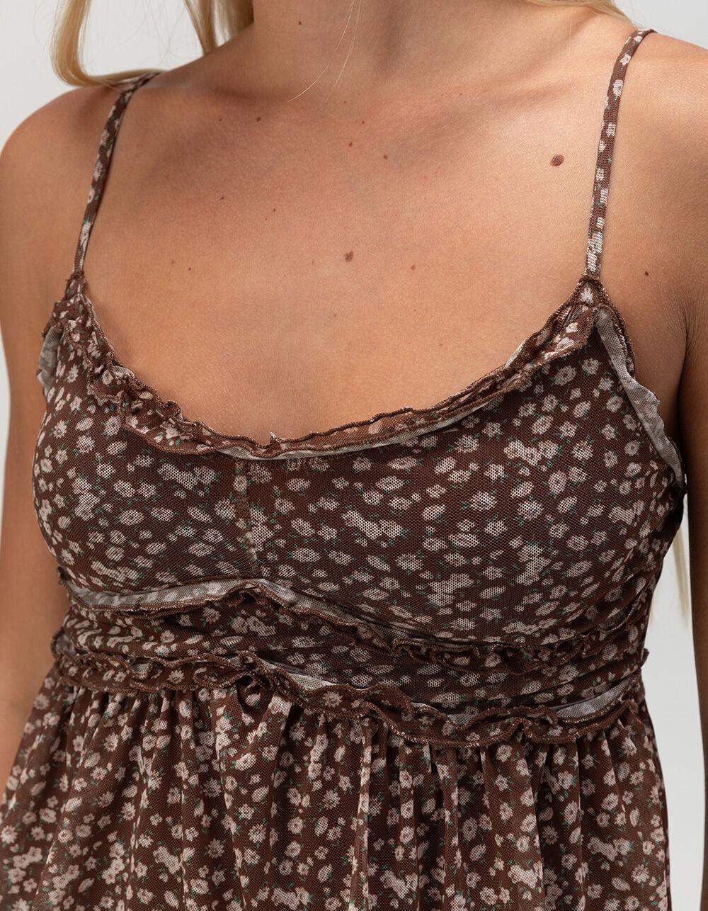 RSQ Womens Ditsy Print Ruffle Cami - BROWN