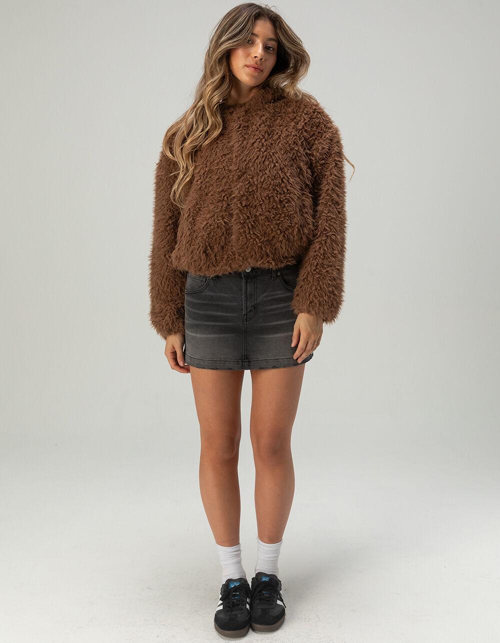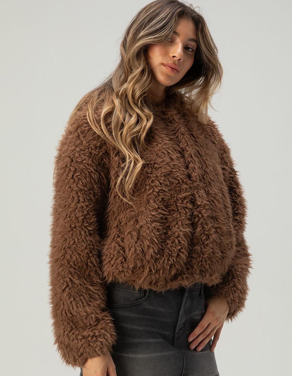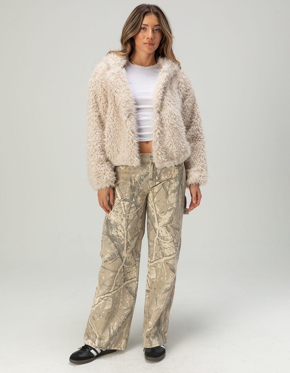 RSQ Womens Long Fur Hooded Jacket - TAN