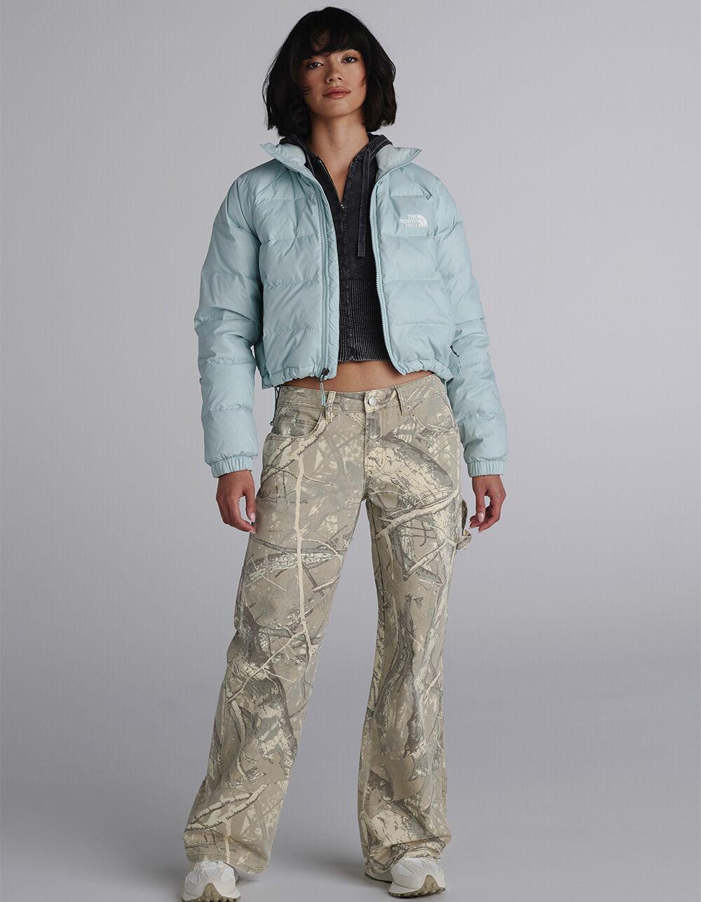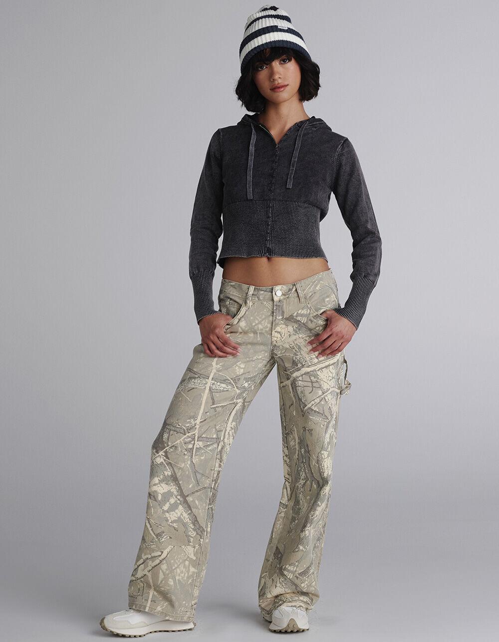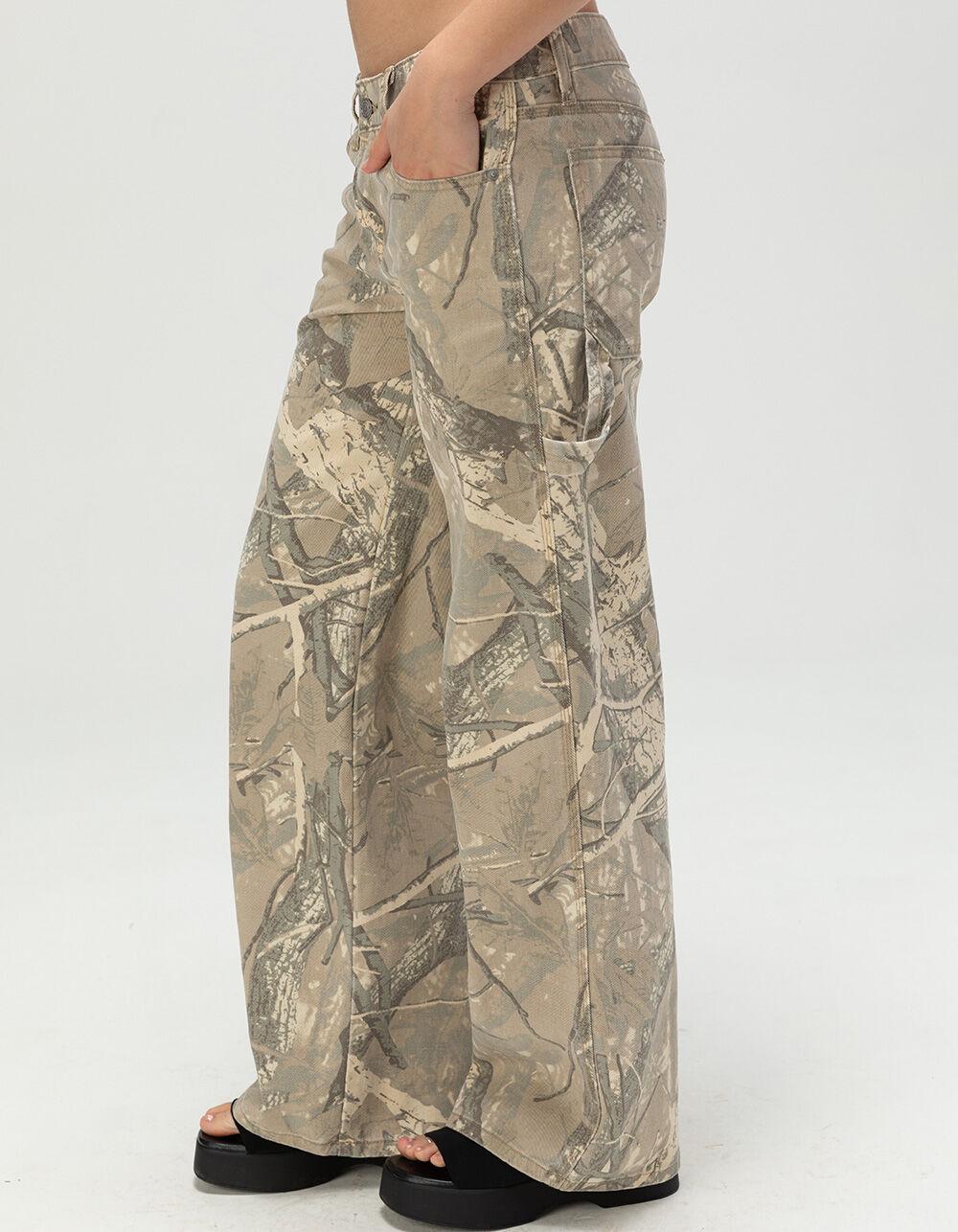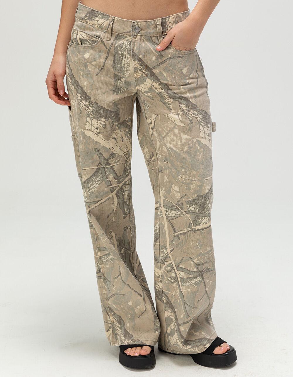 BRN/MULTI. RSQ Low Rise Camo Baggy Carpenter Jeans. Allover camo pattern. 5-pocket denim styling with additional utility pockets on right leg and a hammer loop on the left leg. Button closure paired with zipper fly. Belt loop waist. Low rise. Baggy fit. Approximate leg opening: 20". 100% Cotton. Machine wash. Imported.