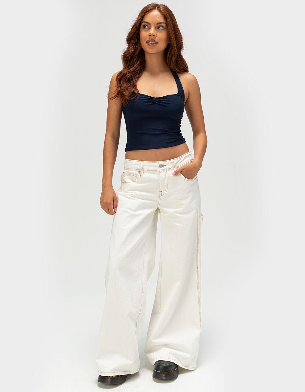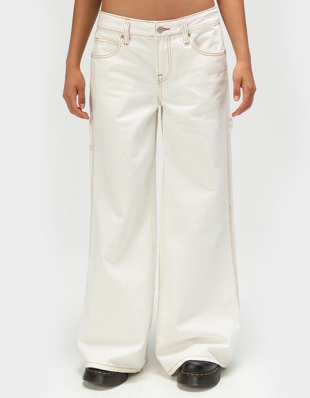 RSQ Low Rise Extreme Baggy Carpenter Jeans. 5-pocket denim styling with additional utility pockets on right leg and hammer loop on left leg. Button closure with zip fly. Belt loop waist. Low rise. Extreme baggy fit. Approximate leg opening: 24". 100% Cotton. Machine wash. Imported.