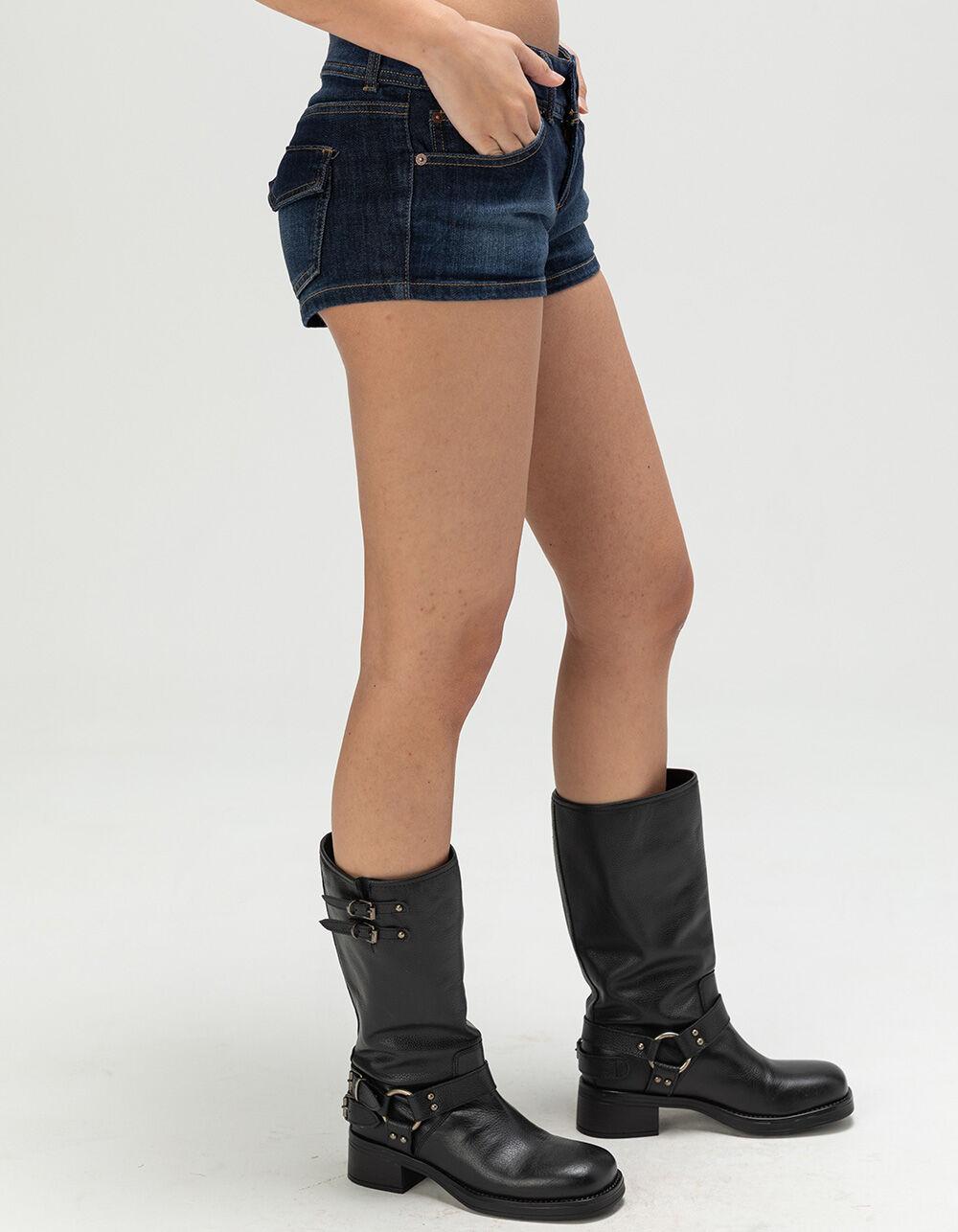 MEDIUM WASH. RSQ Low Rise Micro Mini Shorts. 5-pocket denim styling. Double button closure with zip fly. Belt loop waistband. Low rise. Medium wash. Approximate inseam: 1.5". Approximate outseam: 9". 77% Cotton 22% Polyester 1% Spandex. Machine wash. Imported.